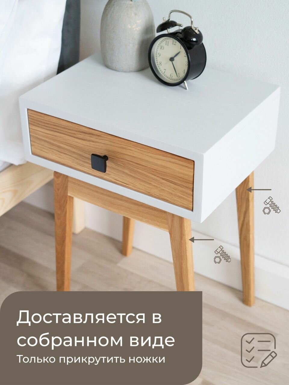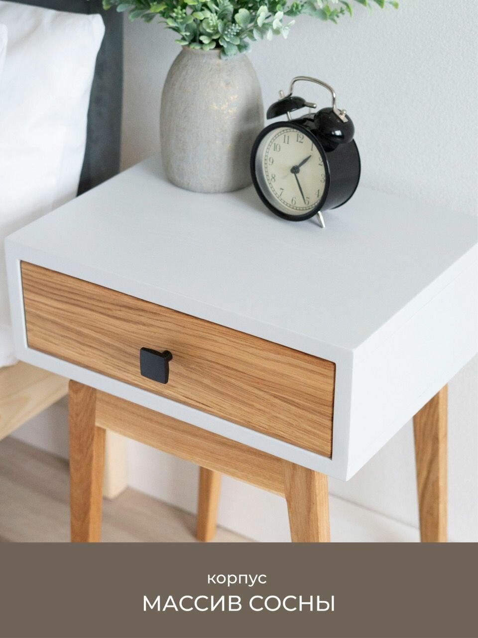 Тумба прикроватная Zolo из натурального дерева - сосна и дуб. Размер 30х39х50 см. Цвет: черный/натуральный. Ручка: сатин