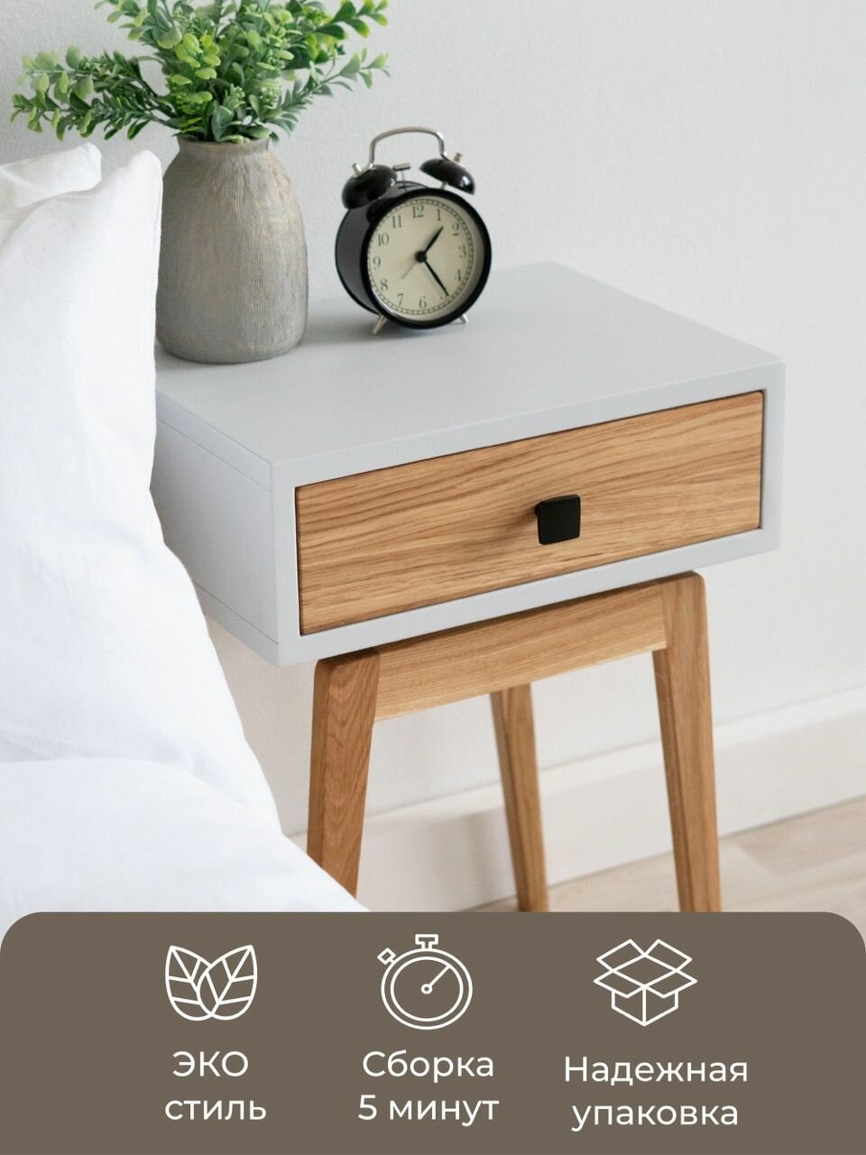 Купить Тумба прикроватная Zolo из натурального дерева - сосна и дуб. Размер 30х39х50 см. Цвет: серый/натуральный. Ручка: черная