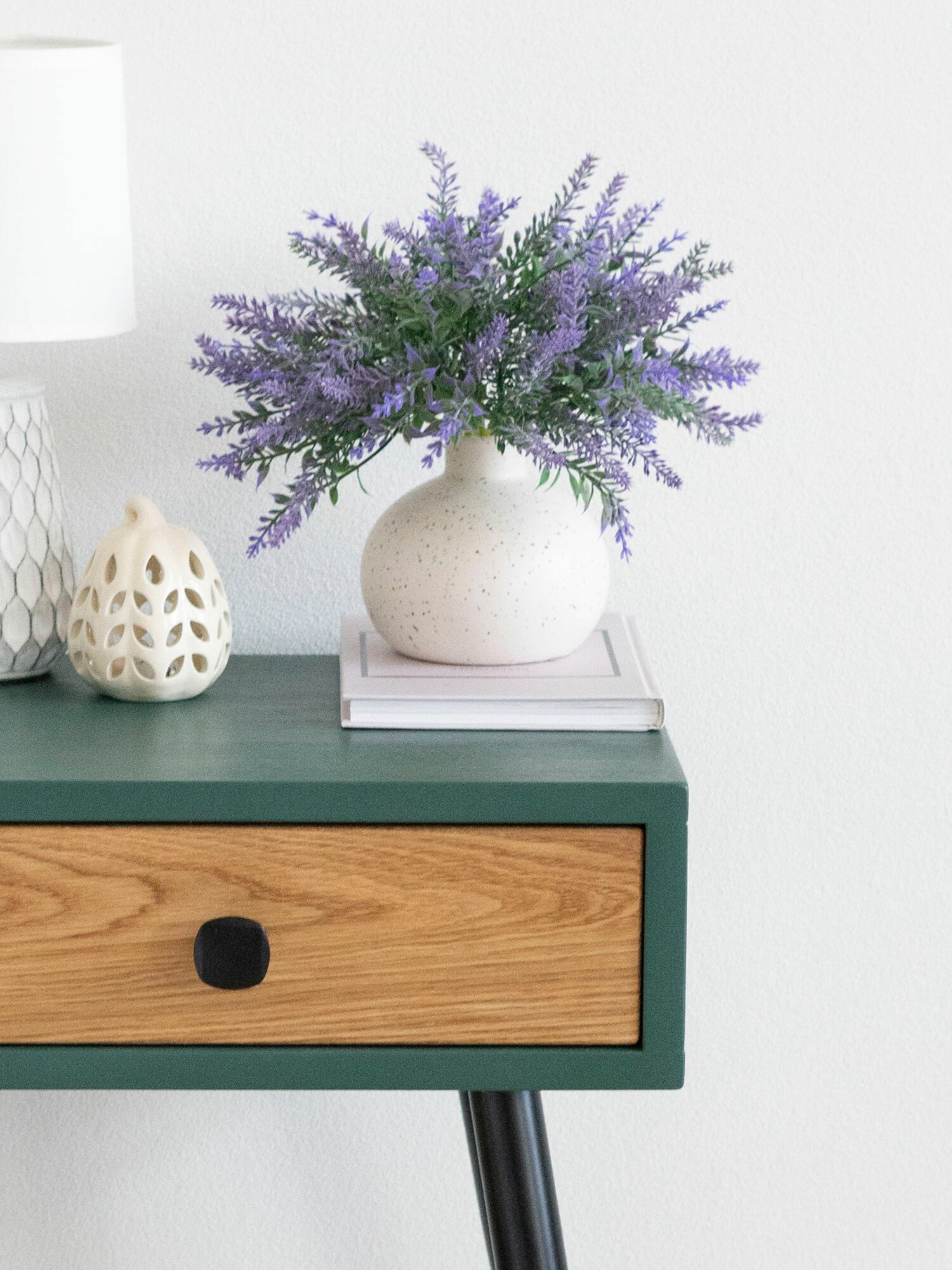 Купить Тумба прикроватная Goa из натурального дерева - сосна и дуб. Размер 30х39х53 см. Цвет: зеленый/натуральный. Ручка: черная