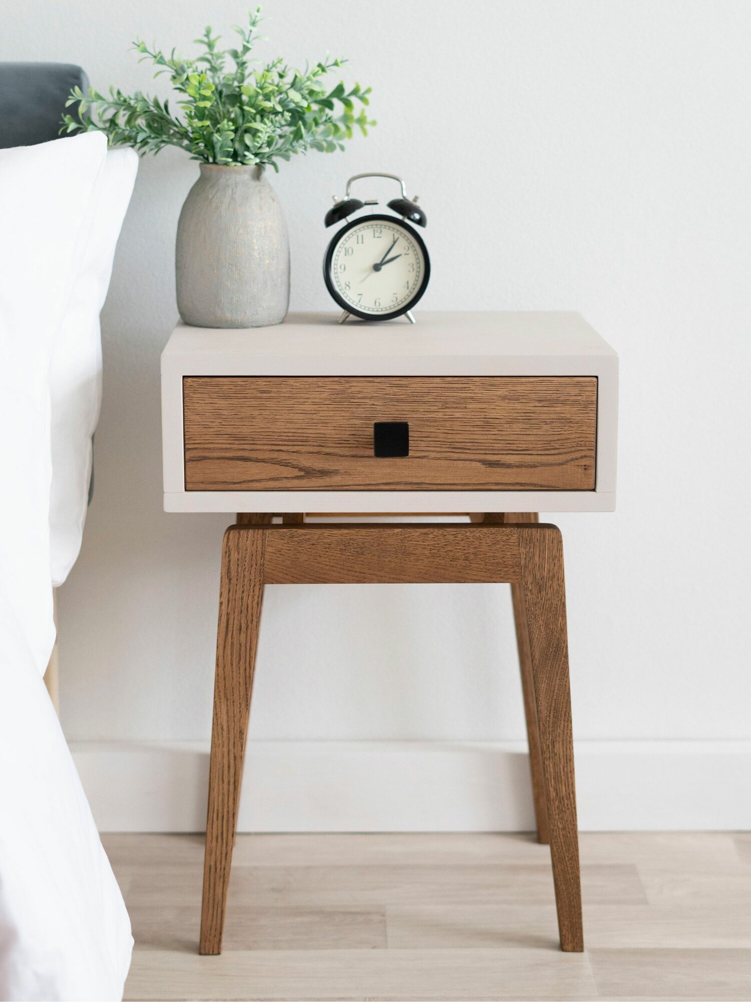 Тумба прикроватная Zolo из натурального дерева - сосна и дуб. Размер 30х39х50см. Цвет: льняной/орех. Ручка: черная