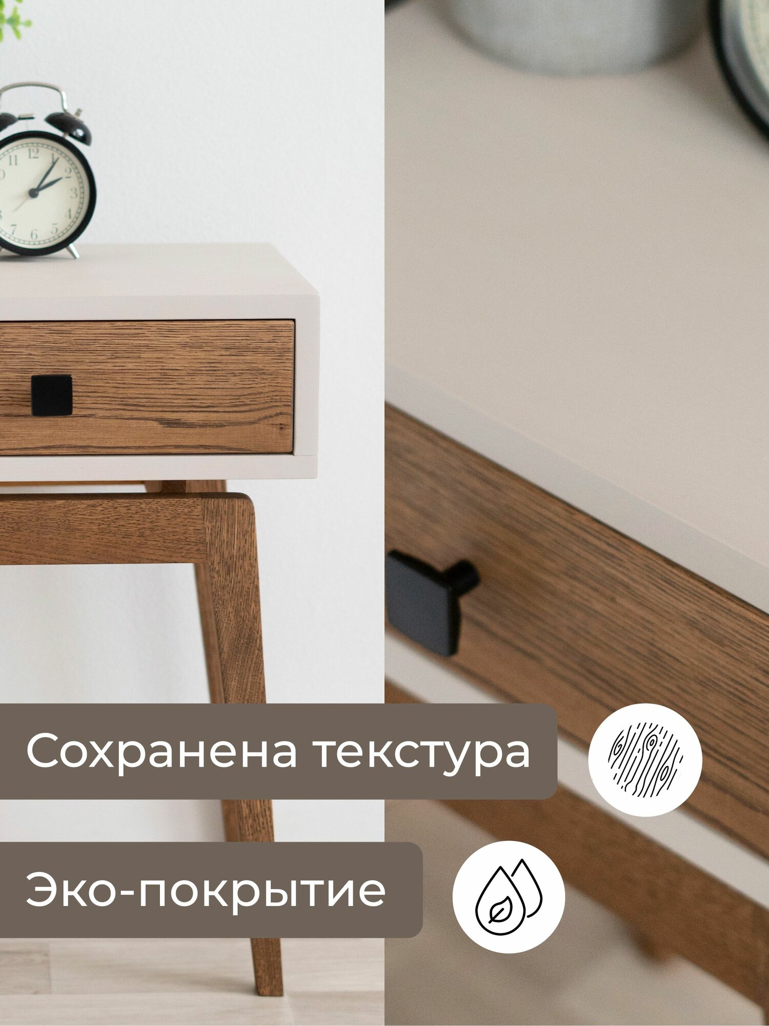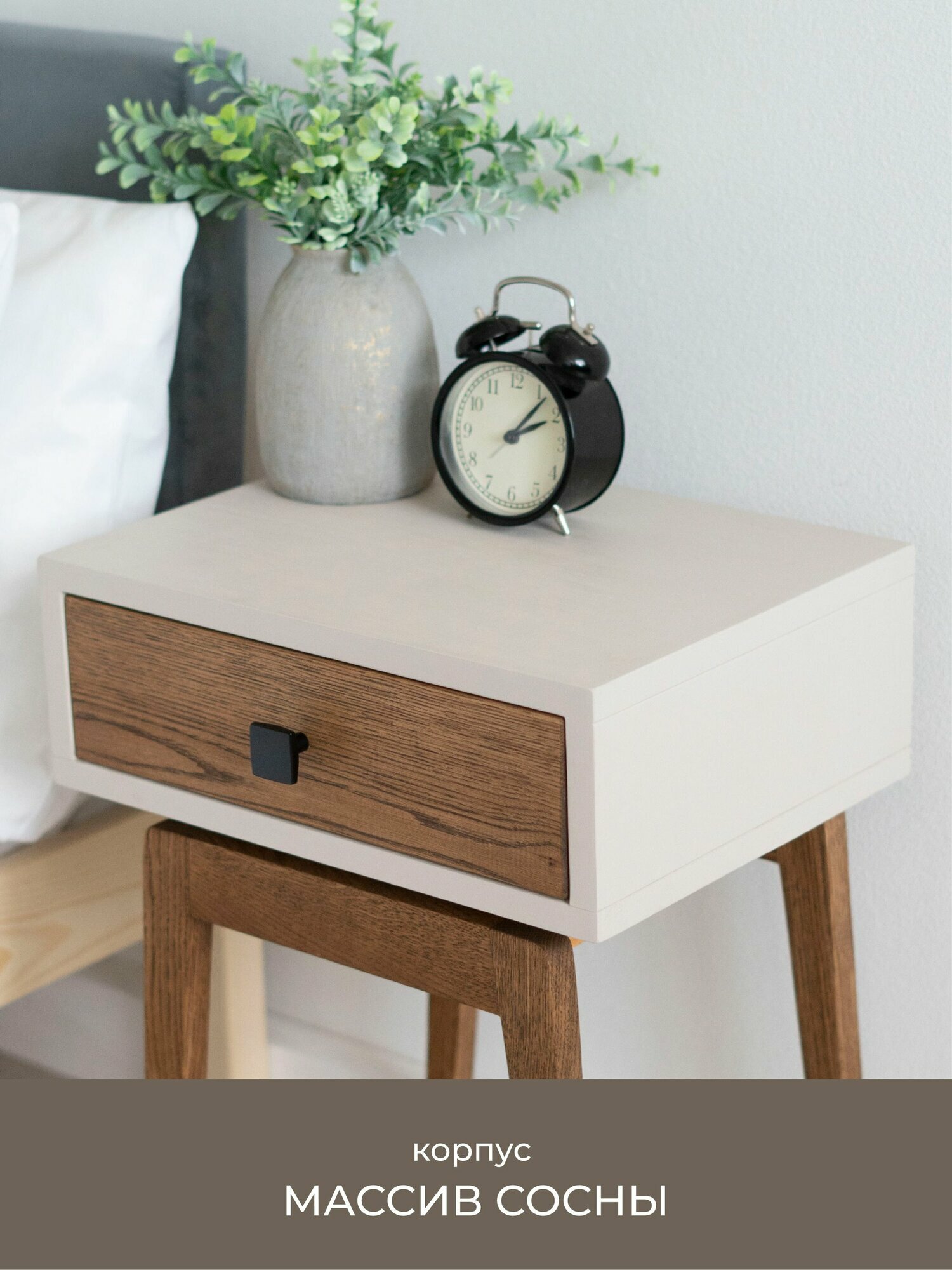 СохранитьТумба прикроватная Zolo из натурального дерева - сосна и дуб. Размер 30х39х60см. Цвет: льняной/орех. Ручка: черная интересное: