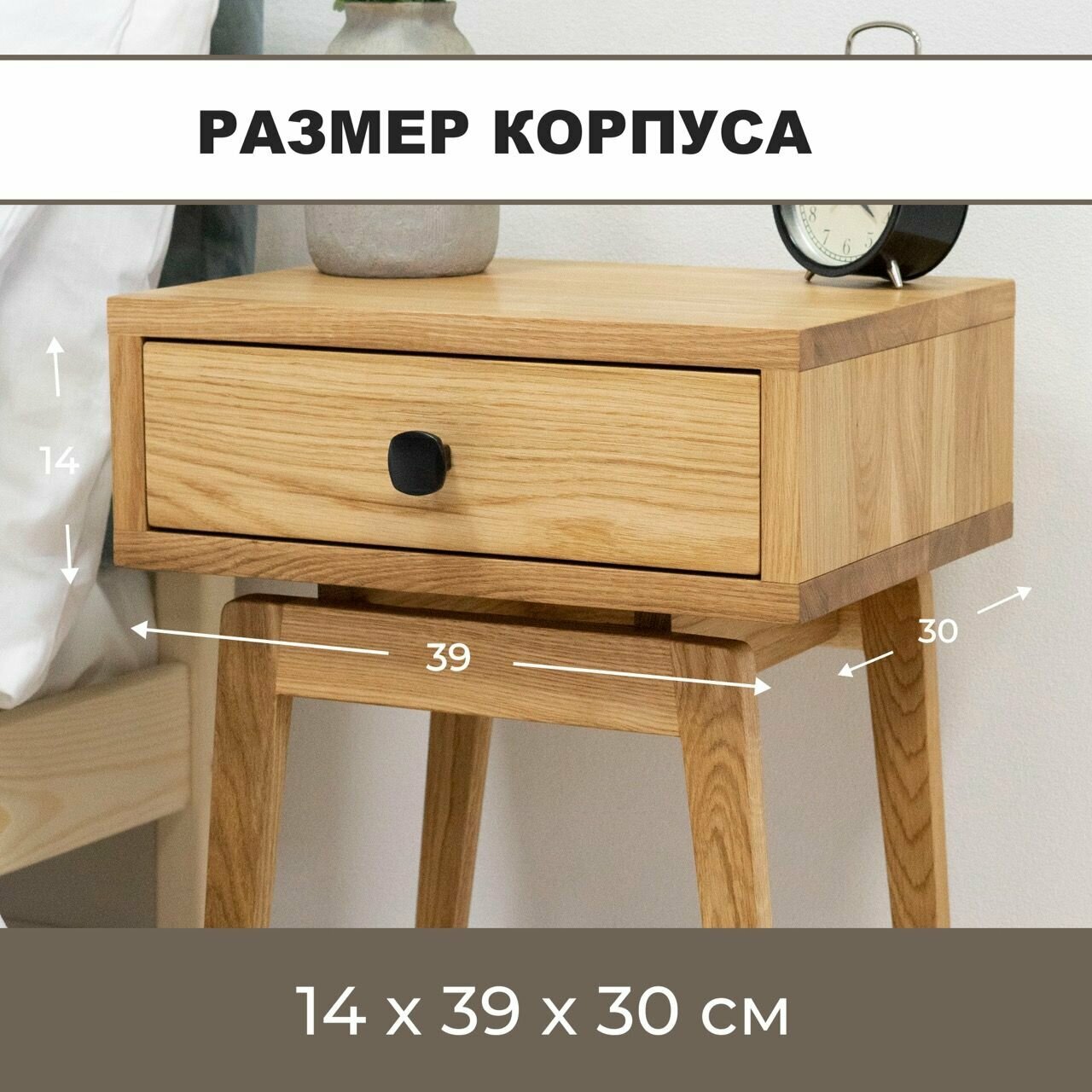 Тумба прикроватная Zolo из массива дуба. Высота 60 см. Парящий корпус 30х39 см.