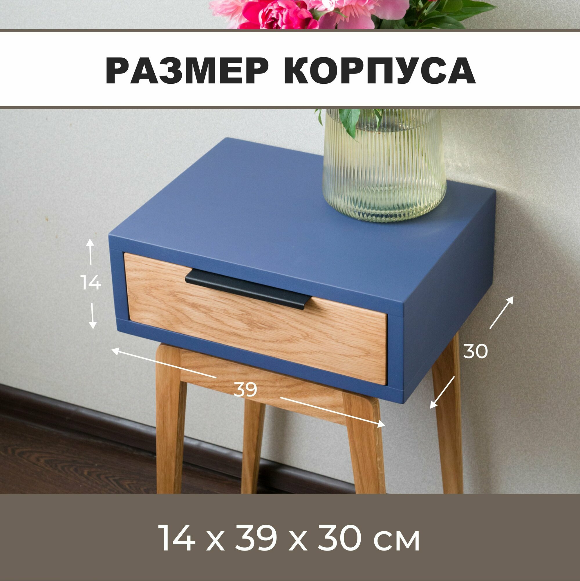 СохранитьТумба прикроватная Zolo из натурального дерева - массив дуба и сосны. Высота 55 см. Парящий корпус 30х39 см. Цвет: синий. интересное:
