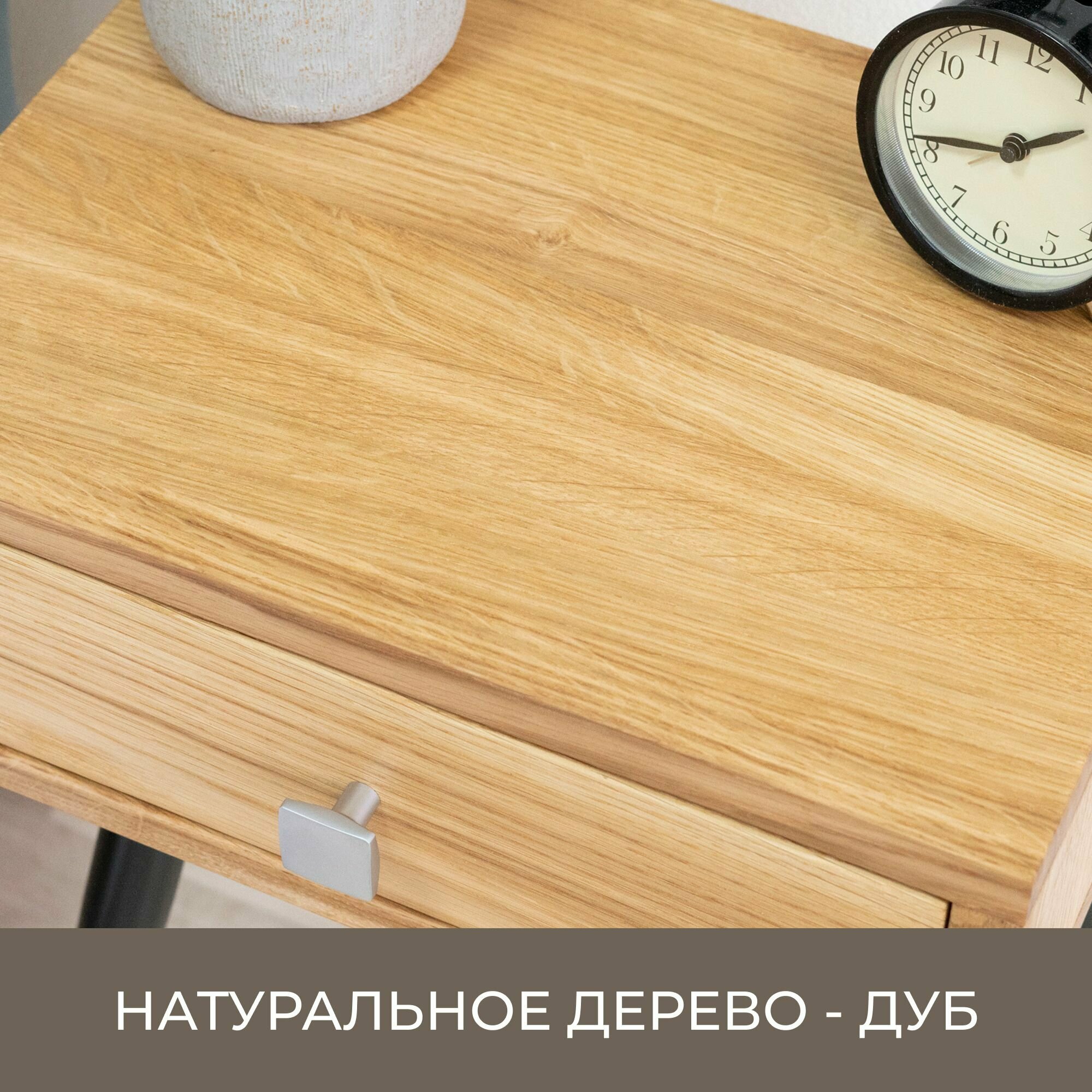 Тумба прикроватная Zolo из натурального дерева - сосна и дуб. Размер 30х39х50 см. Цвет: черный/натуральный. Ручка: сатин