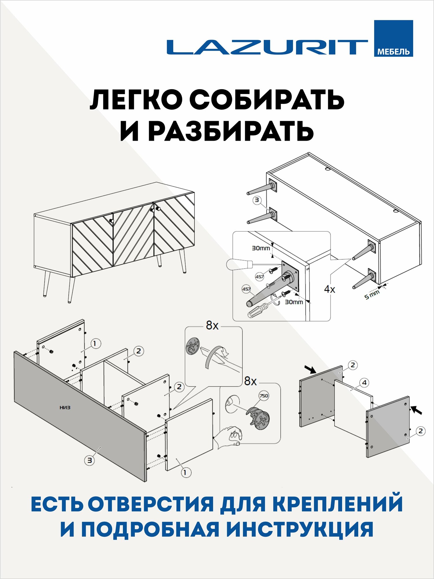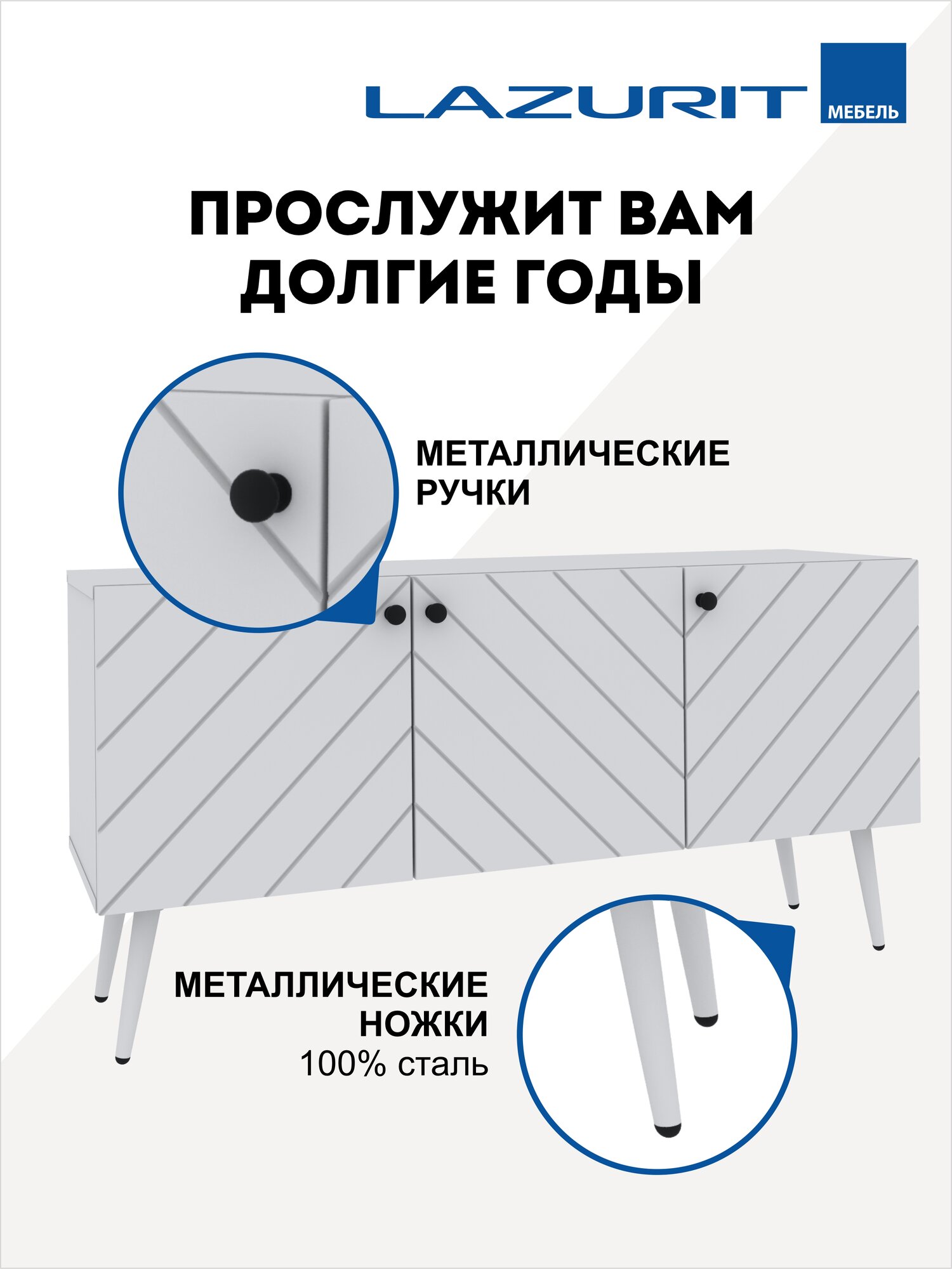 Тумба под телевизор 55 дюймов Lazurit Symphonie белая напольная с ящиками 114х30х36 Soft-touch интересное: