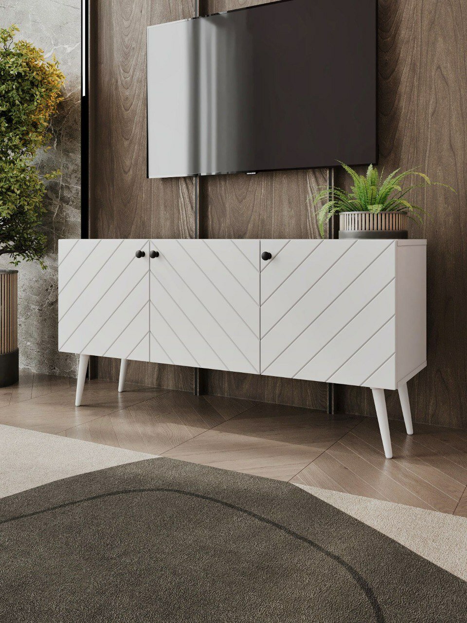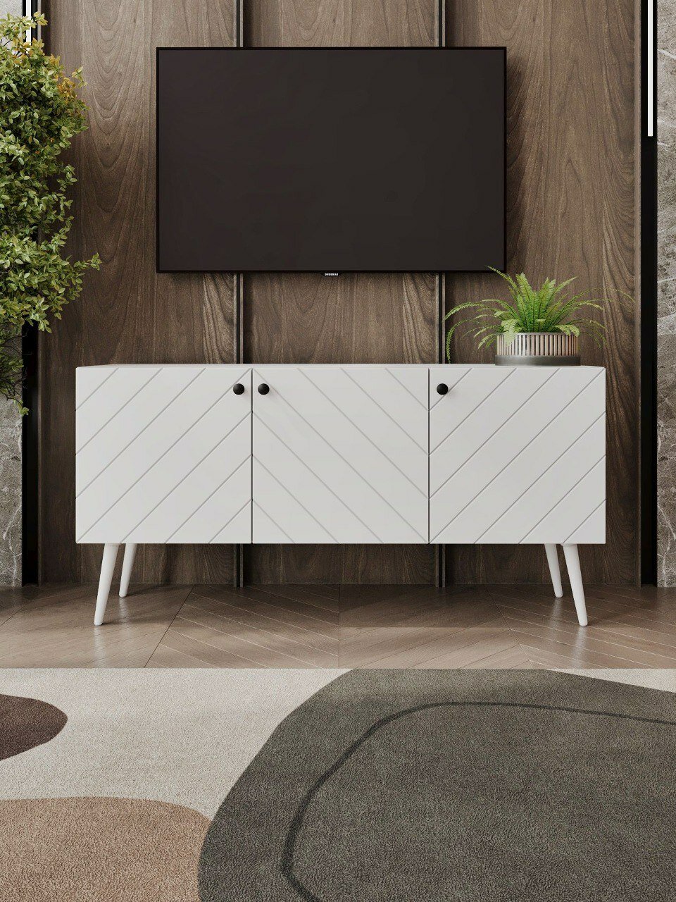 Купить Тумба под телевизор 55 дюймов Lazurit Symphonie белая напольная с ящиками 114х30х36 Soft-touch
