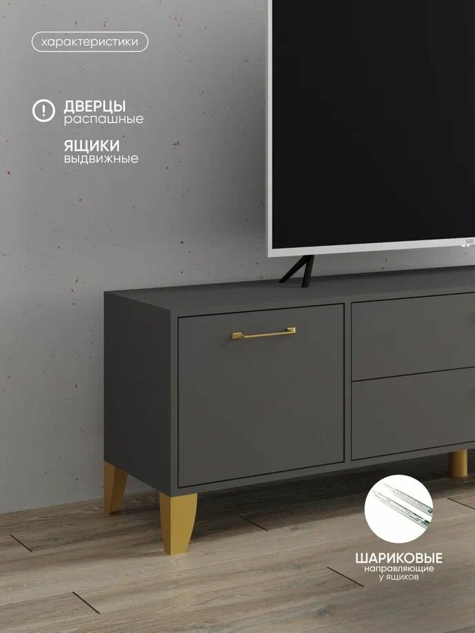 Тумба под ТВ ARNIKA Парус-13 Графит, 4 ящика, ЛДСП/МДФ, универсальная, серая интересное: