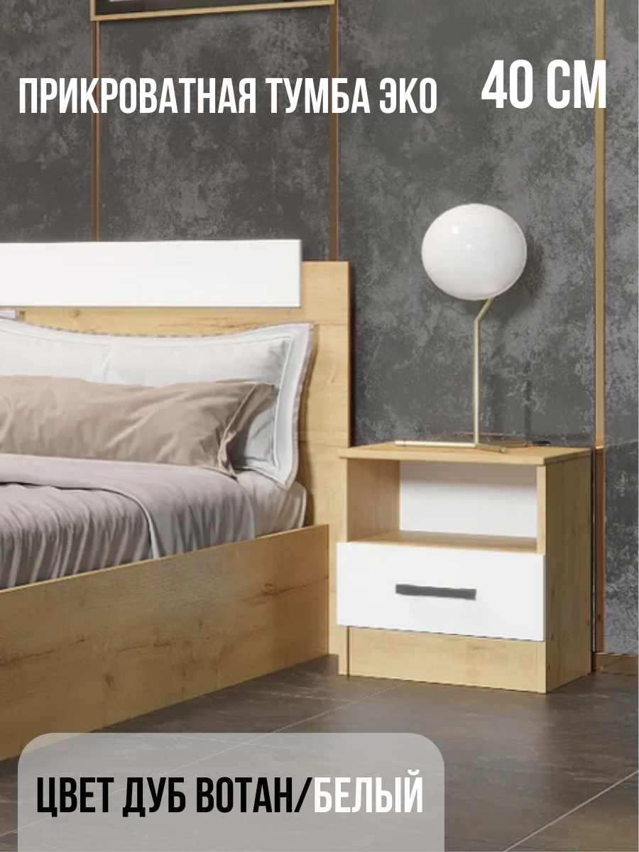 Комплект из двух прикроватных тумбочек "Эко", цвет дуб вотан/белый гладкий/лоредо, ширина каждой — 40 см интересное: