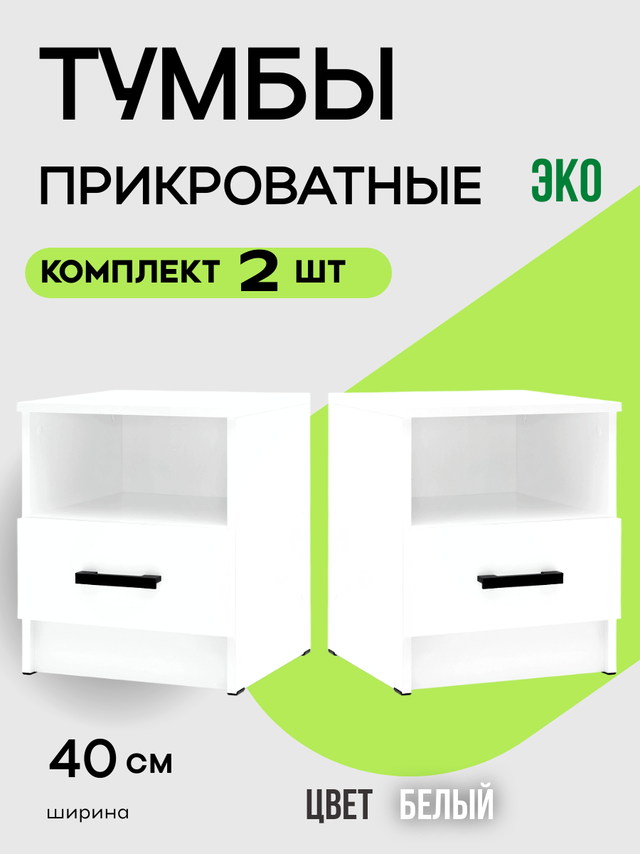 Ниже Вы можете прочитать отзывы на Комплект из двух прикроватных тумбочек "Эко", белый цвет, ширина каждой — 40 см, ознакомится с подробными характеристиками, посмотреть интересные обзоры и фотографии на Комплект из двух прикроватных тумбочек "Эко", белый цвет, ширина каждой — 40 см.