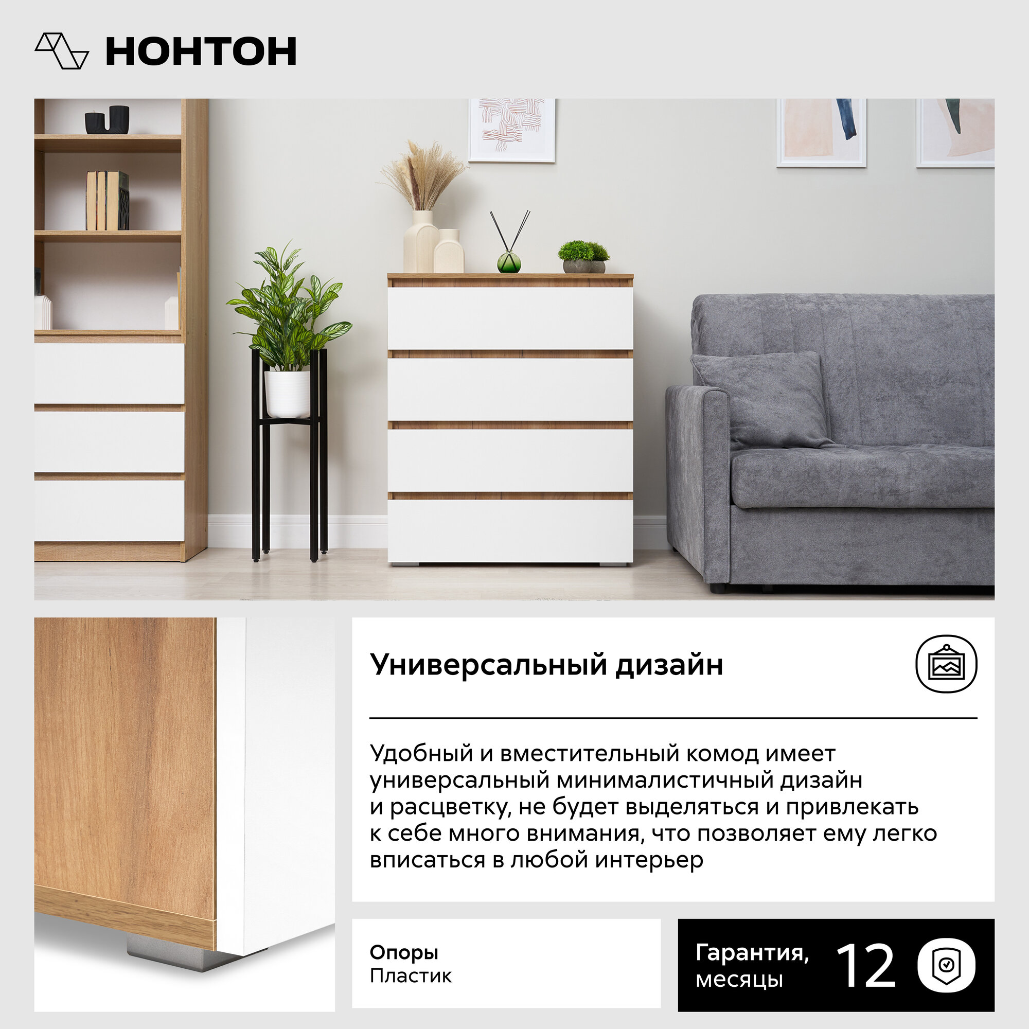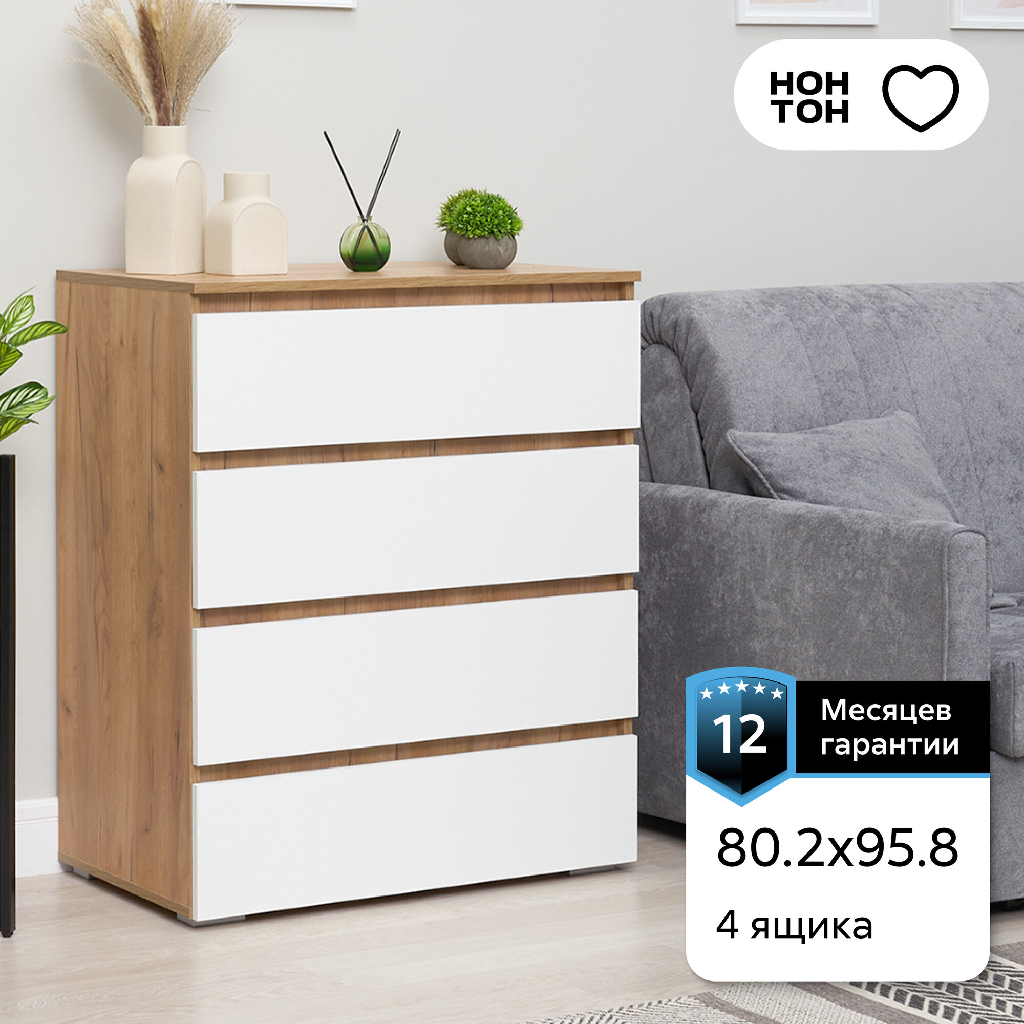 Комод для одежды Нонтон Ирма, белый / дуб крафт золото, 80.2x46x95.8 см интересное: