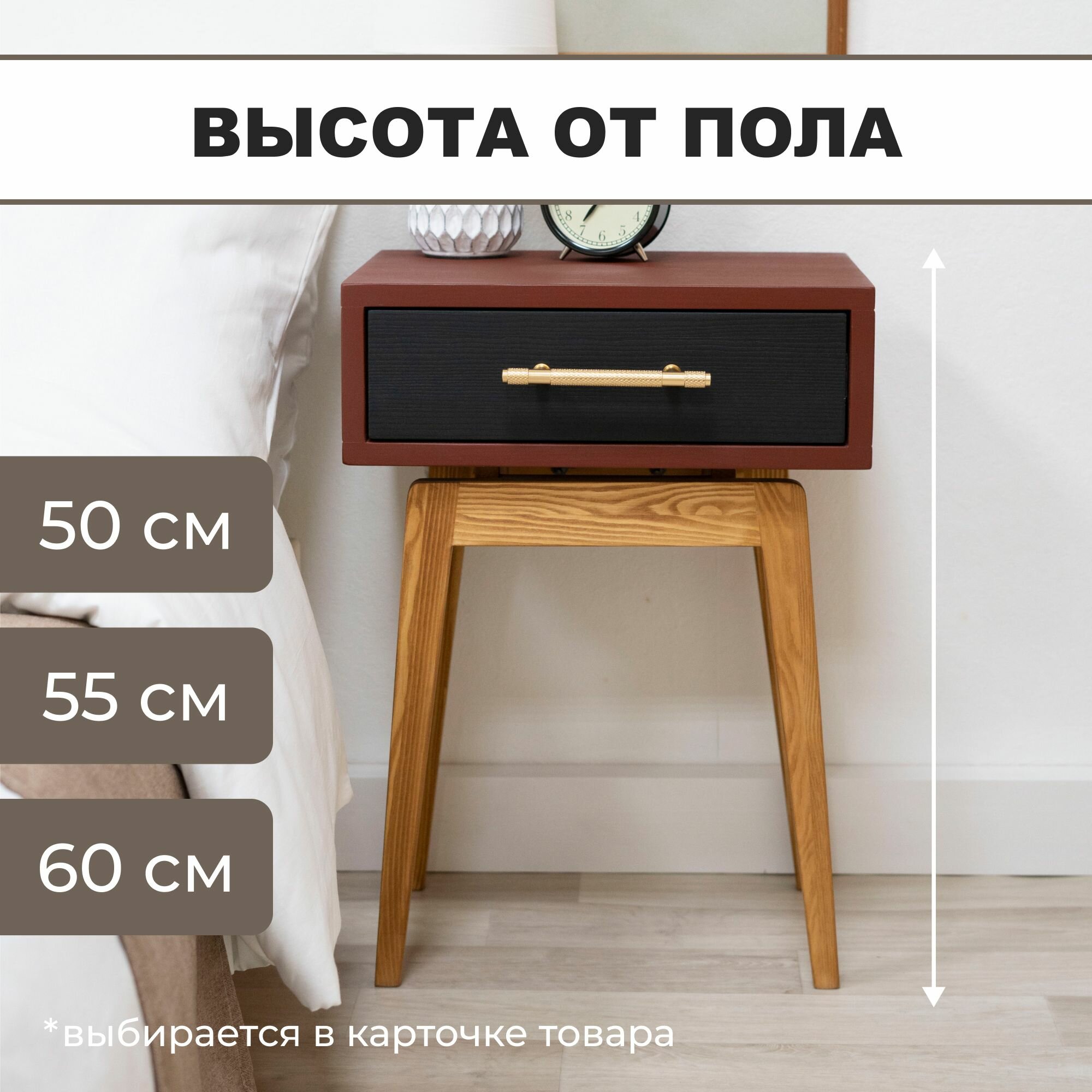 СохранитьТумба прикроватная Zolo из натурального дерева - массив сосны. Высота 55 см. Парящий корпус 30х39 см. Цвет: натуральный/бордовый, ручка золотая интересное: