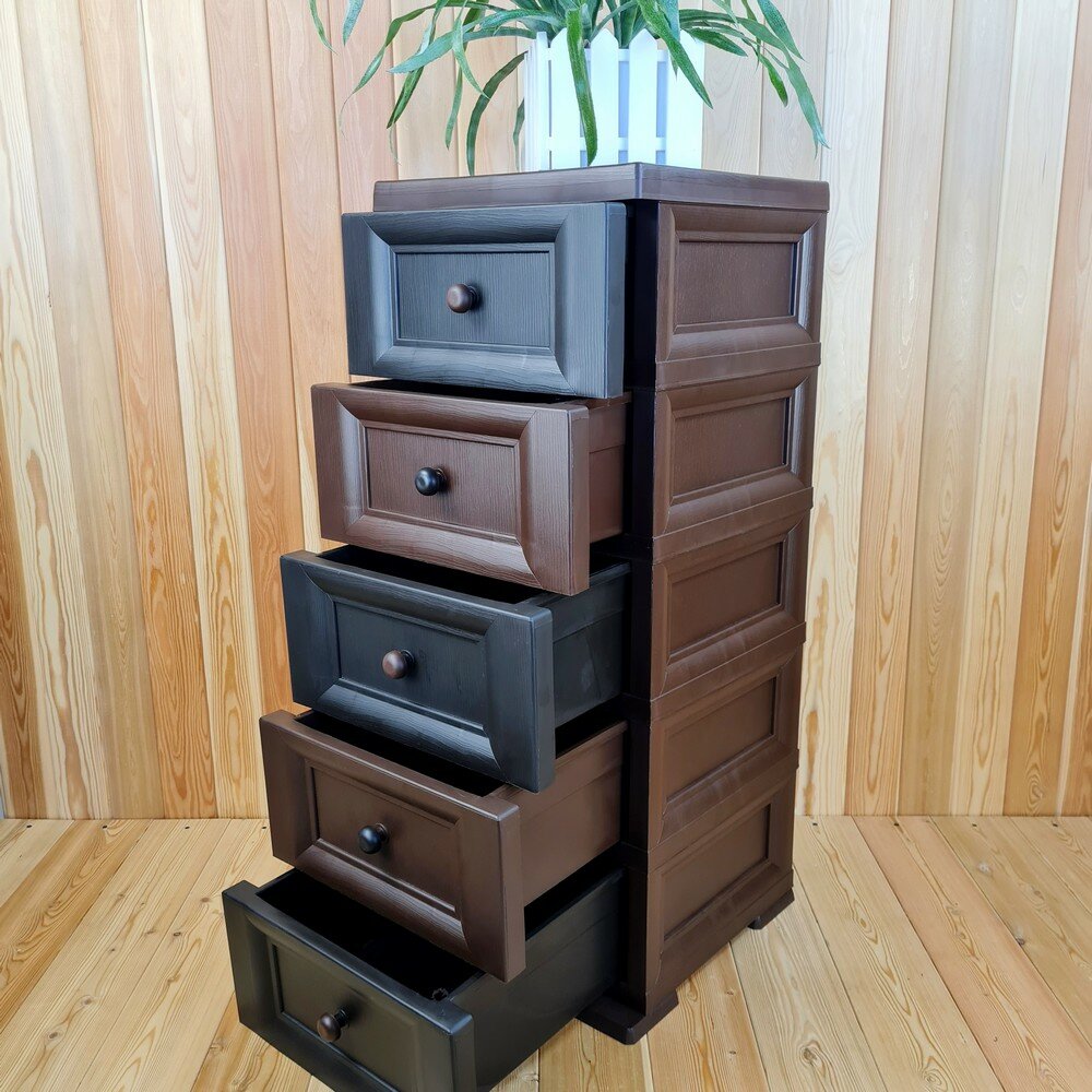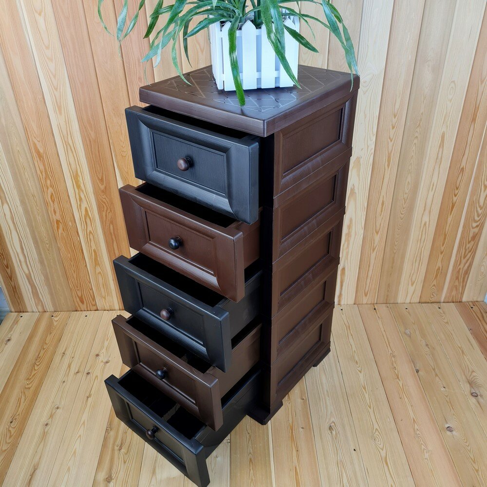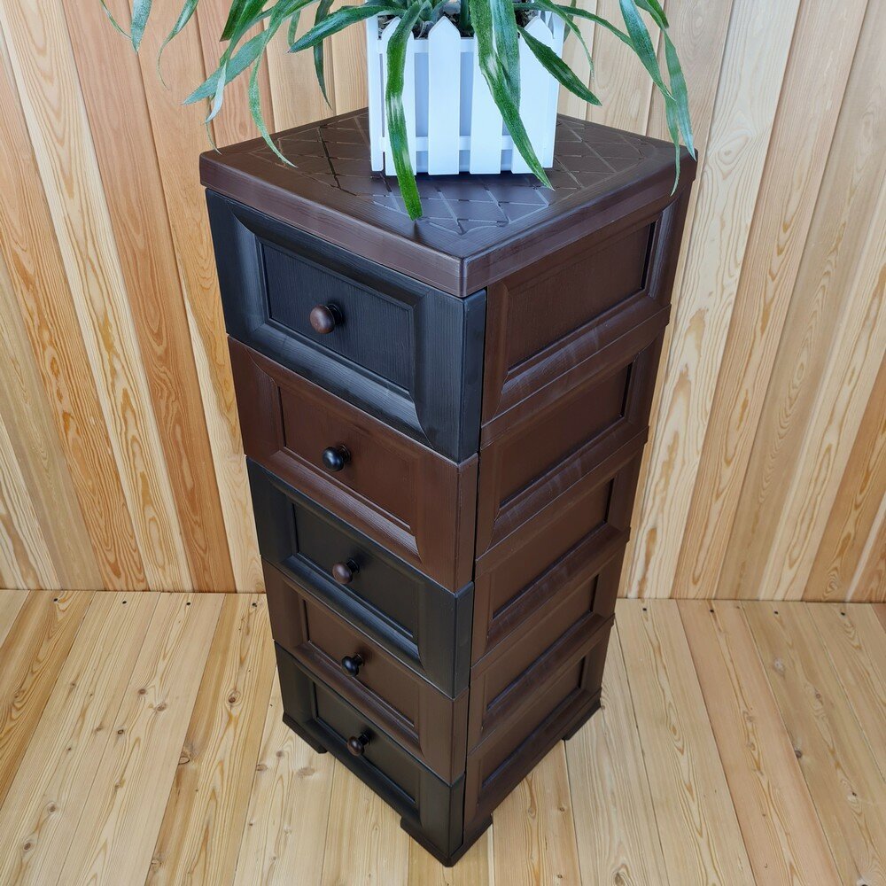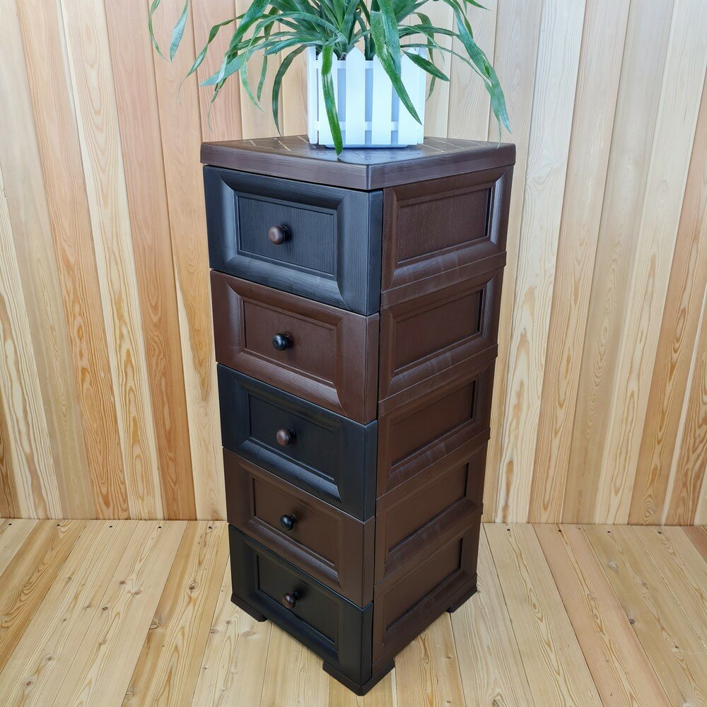 Комод пластиковый, "УЮТ", усиленный, 5 этажей, Цвет: Коричневый с шоколадными сплошными ящиками. Арт: К-013-Д5Ш