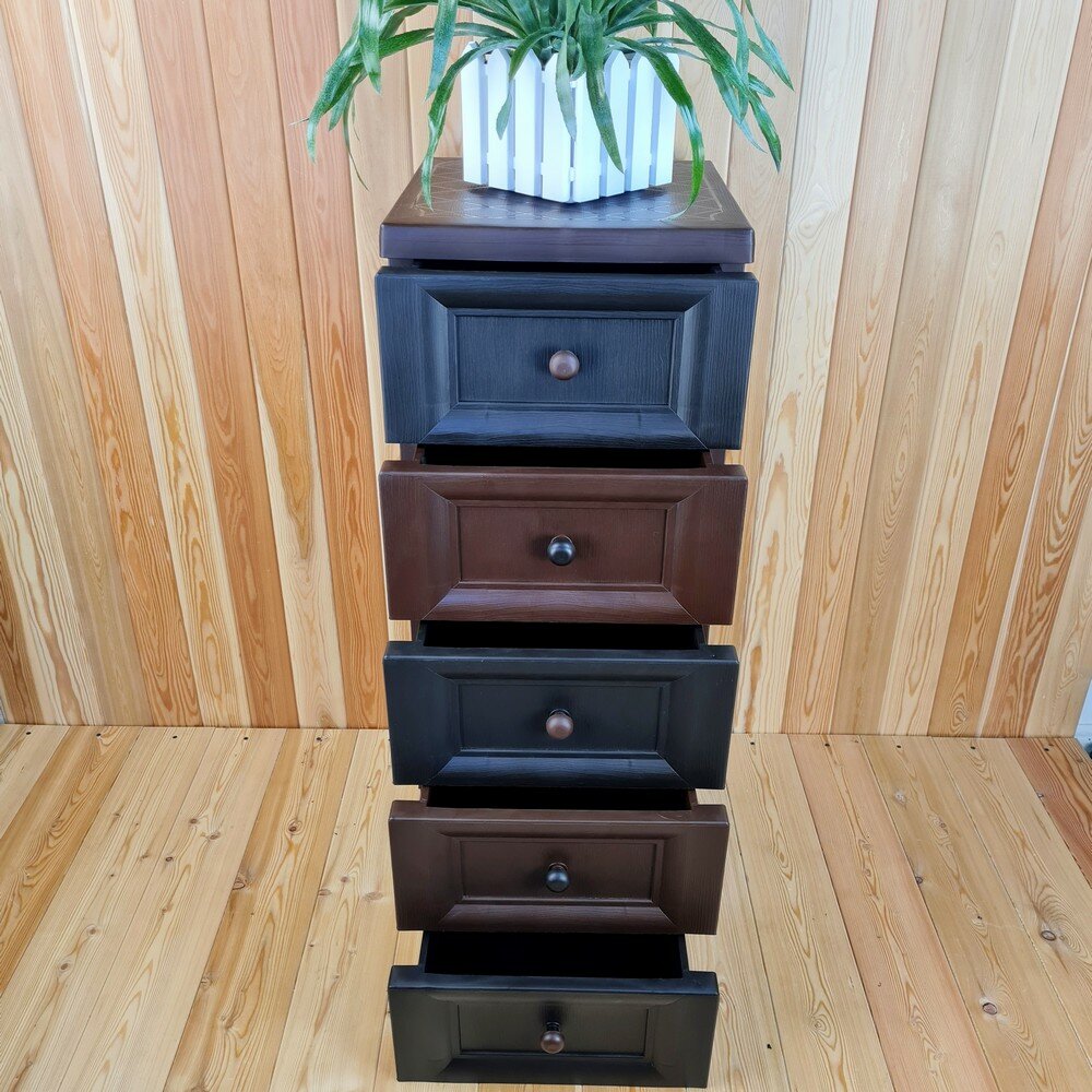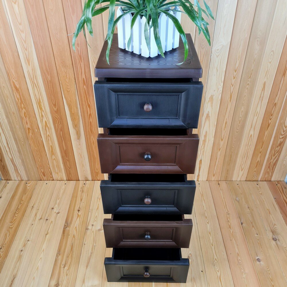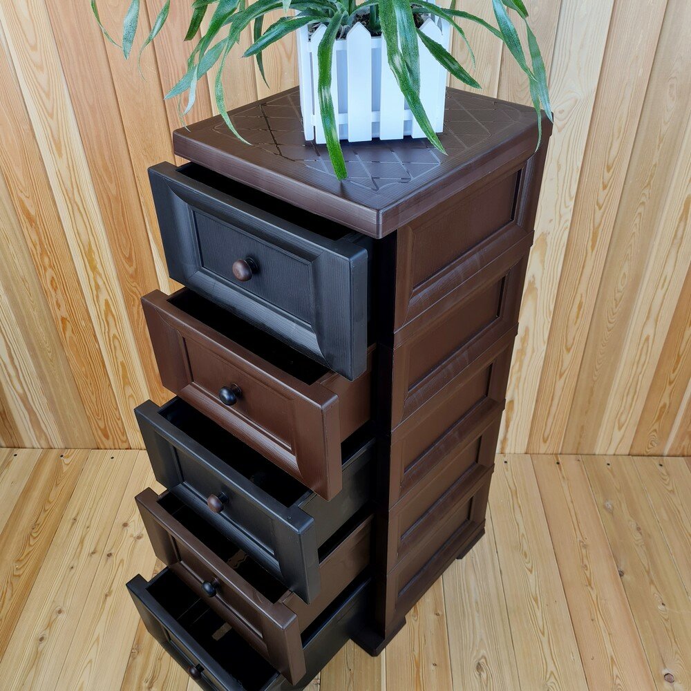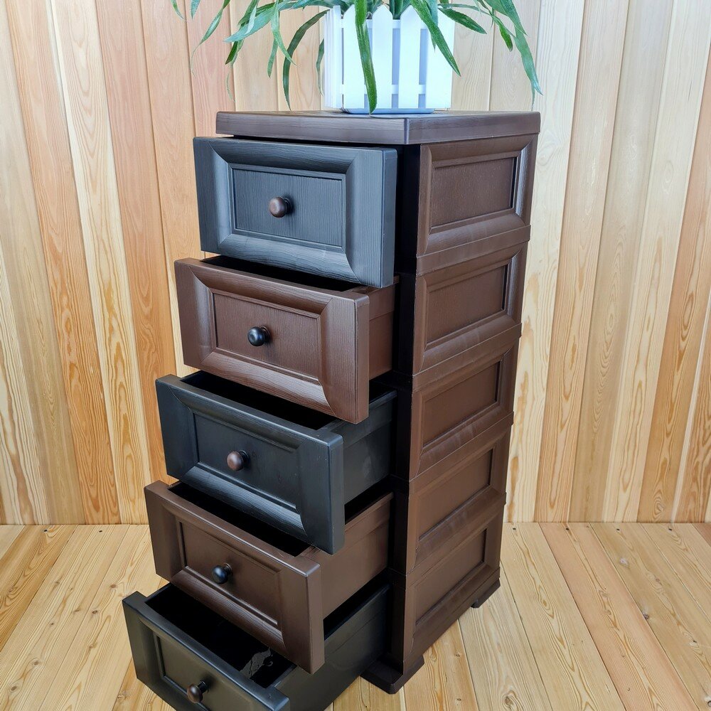 Комод пластиковый, "УЮТ", усиленный, 5 этажей, Цвет: Коричневый с шоколадными сплошными ящиками. Арт: К-013-Д5Ш