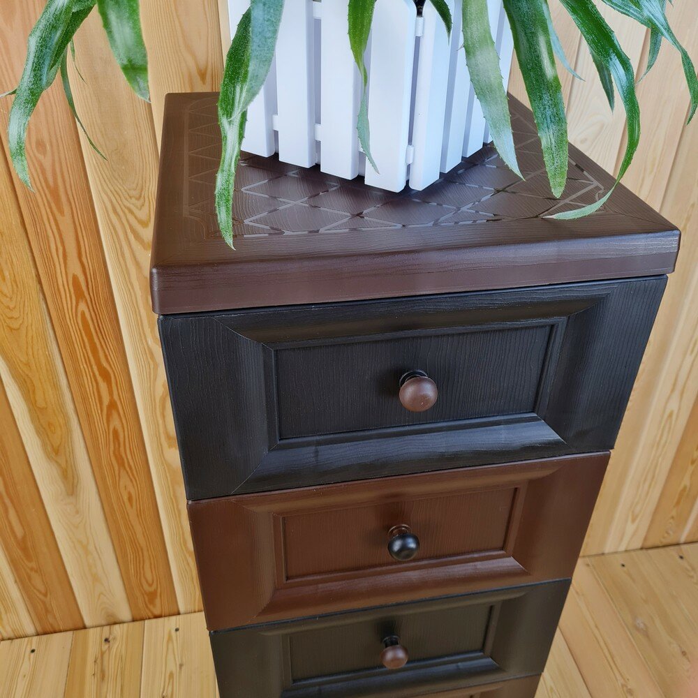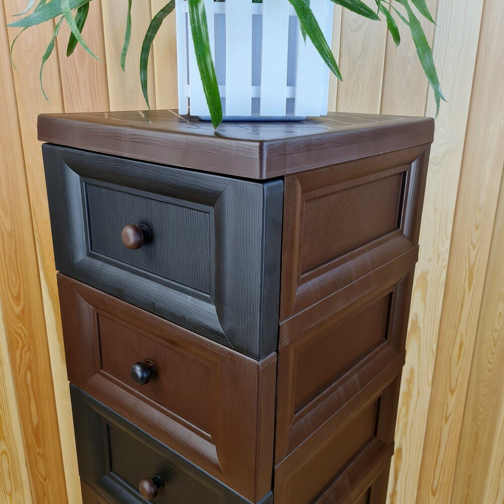 Купить Комод пластиковый, "УЮТ", усиленный, 5 этажей, Цвет: Коричневый с коричнево-шоколадными сплошными ящиками. Арт: К-013-Д3Ш2Д