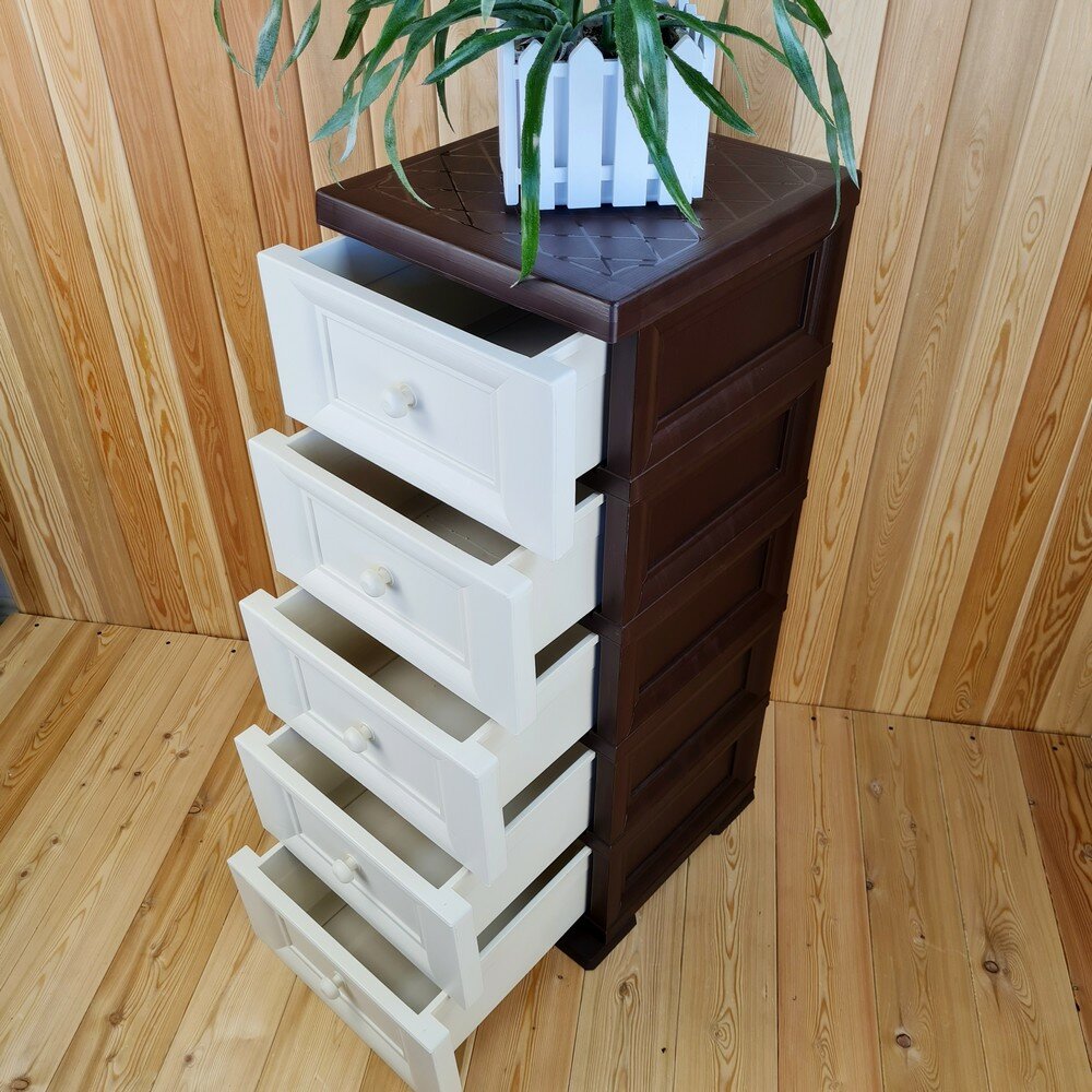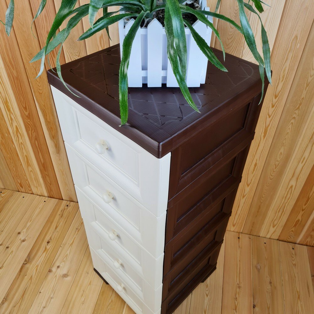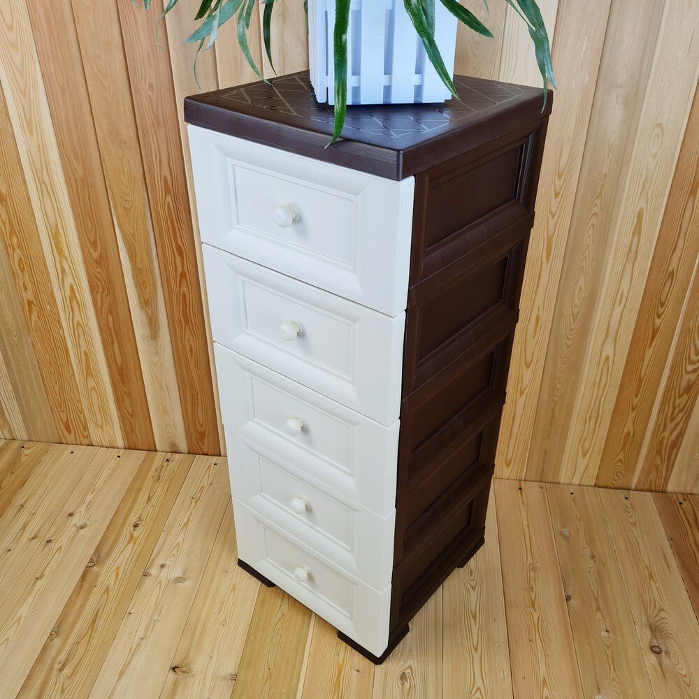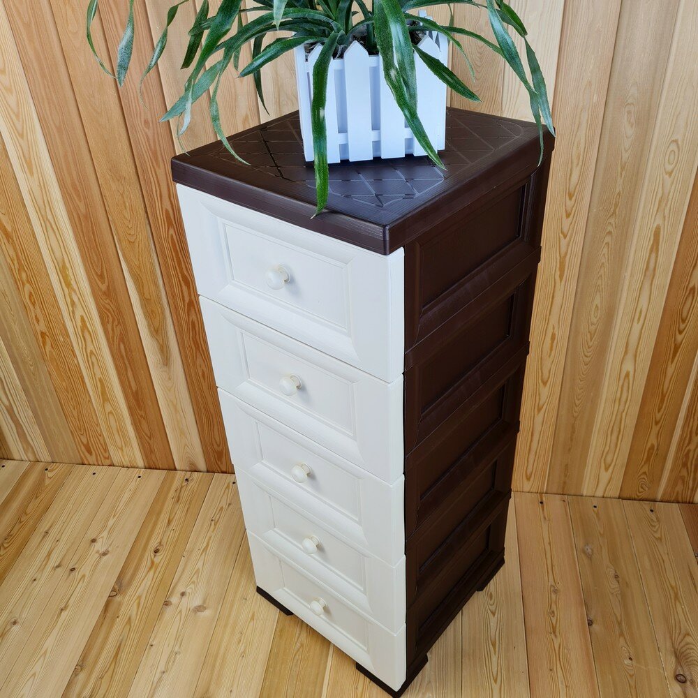 Купить Комод пластиковый, "УЮТ", усиленный, 5 этажей, Цвет: Коричневый с бежевыми сплошными ящиками. Арт: К-013-Д5Б