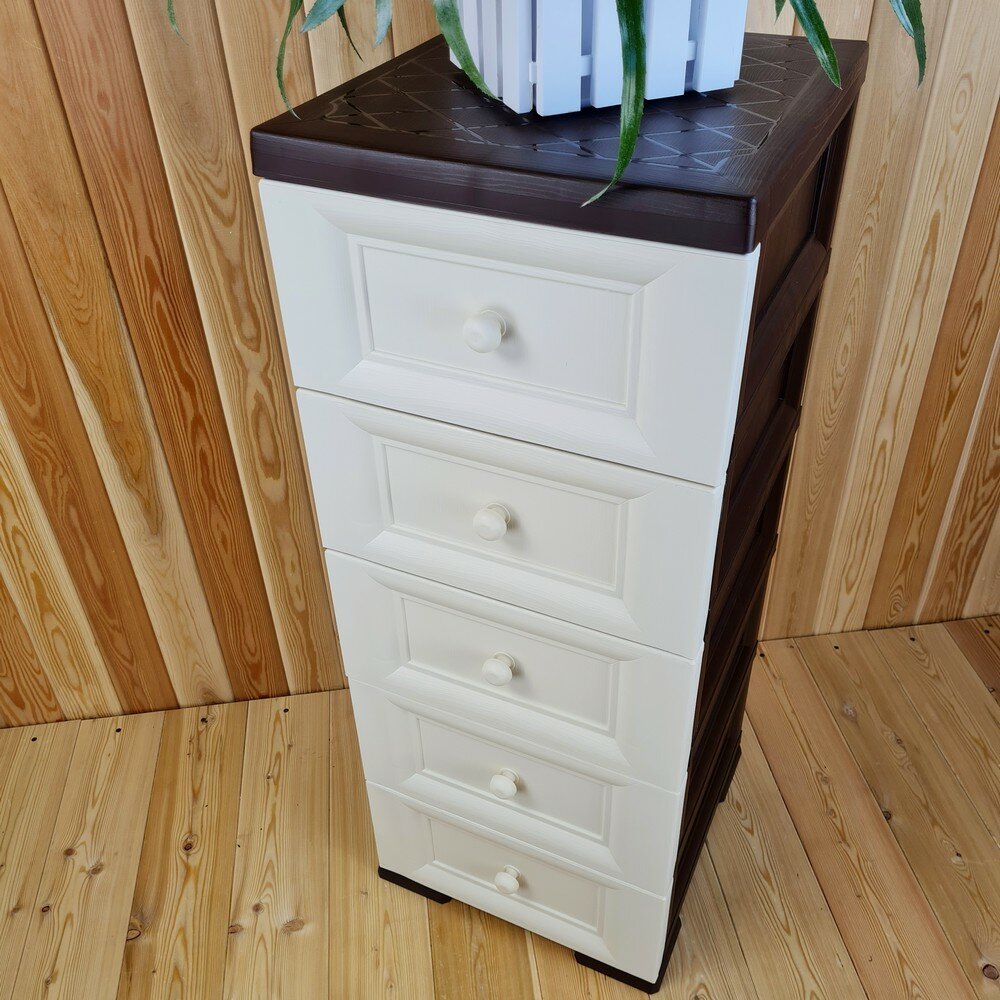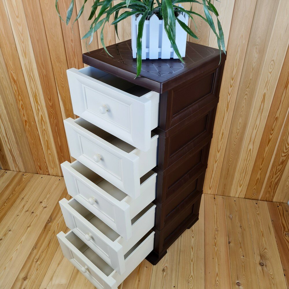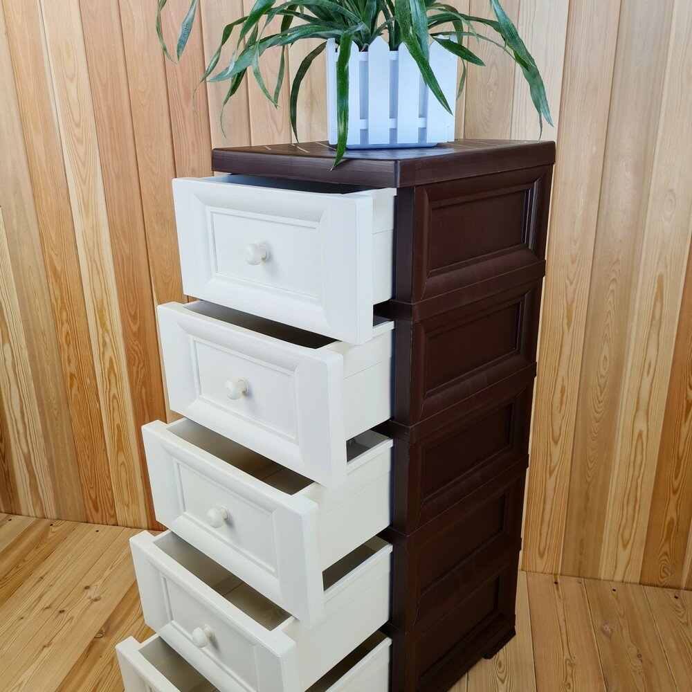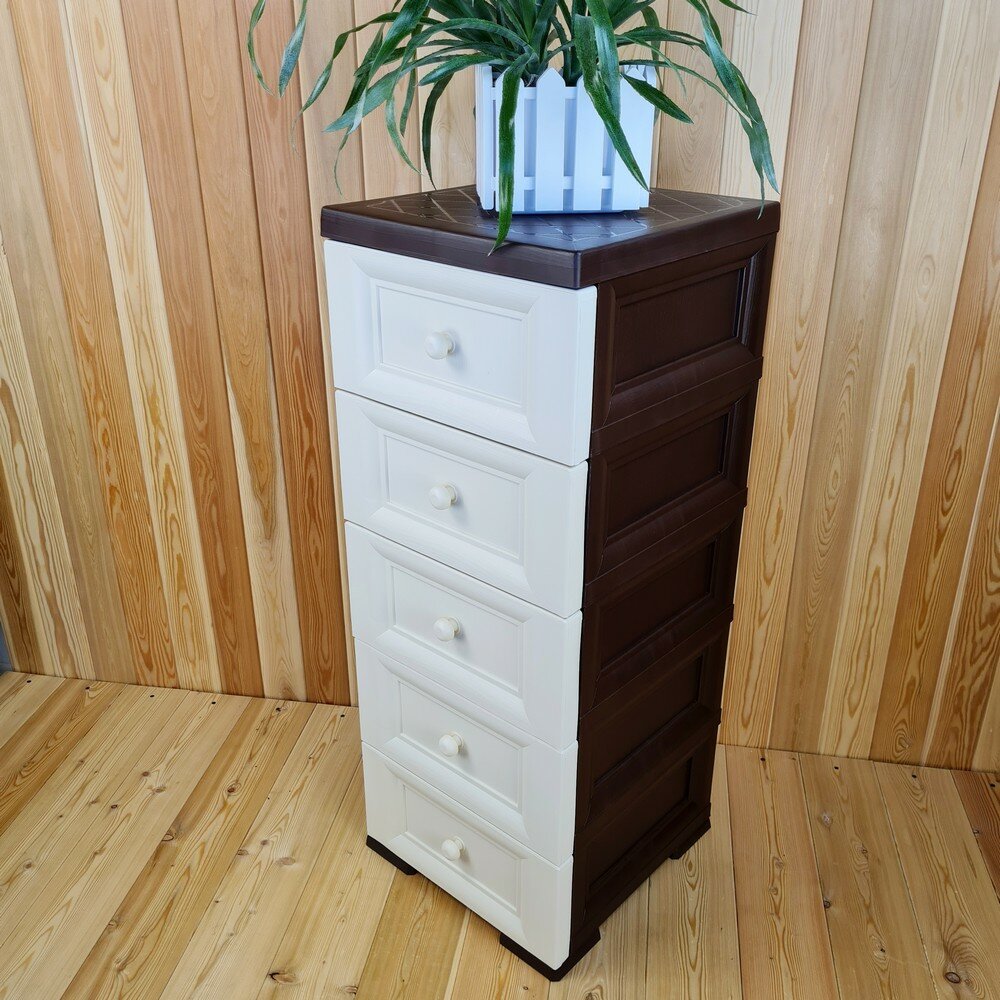 Купить Комод пластиковый, "УЮТ", усиленный, 5 этажей, Цвет: Коричневый с бежевыми сплошными ящиками. Арт: К-013-Д5Б