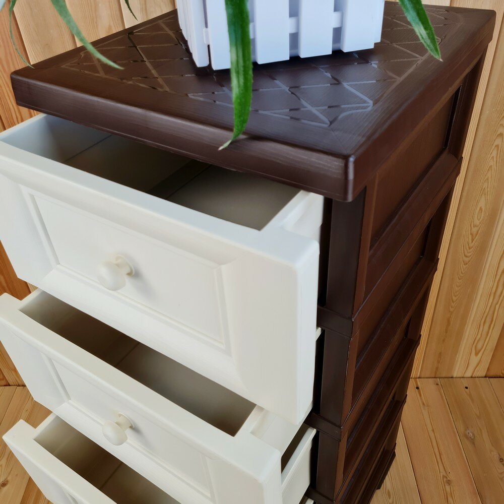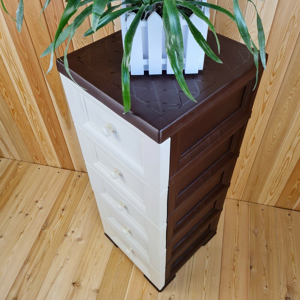 Комод пластиковый, "УЮТ", усиленный, 5 этажей, Цвет: Коричневый с бежево-шоколадными сплошными ящиками. Арт: К-013-Д3Б2Ш