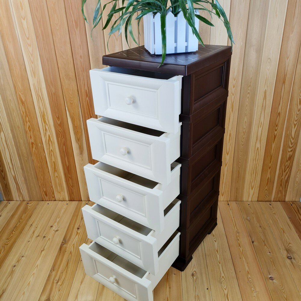 Комод пластиковый, "УЮТ", усиленный, 5 этажей, Цвет: Коричневый с шоколадными сплошными ящиками. Арт: К-013-Д5Ш