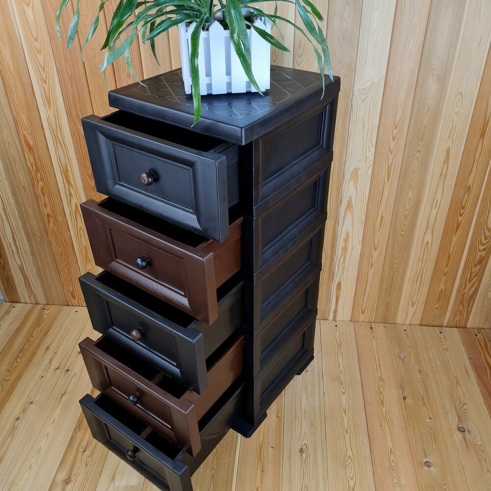 Комод пластиковый, "УЮТ", усиленный, 5 этажей, Цвет: Шоколадный с коричневыми сплошными ящиками. Арт: К-013-Ш5Д