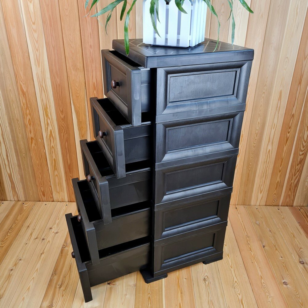Комод пластиковый, "УЮТ", усиленный, 5 этажей, Цвет: Шоколадный с коричневыми сплошными ящиками. Арт: К-013-Ш5Д