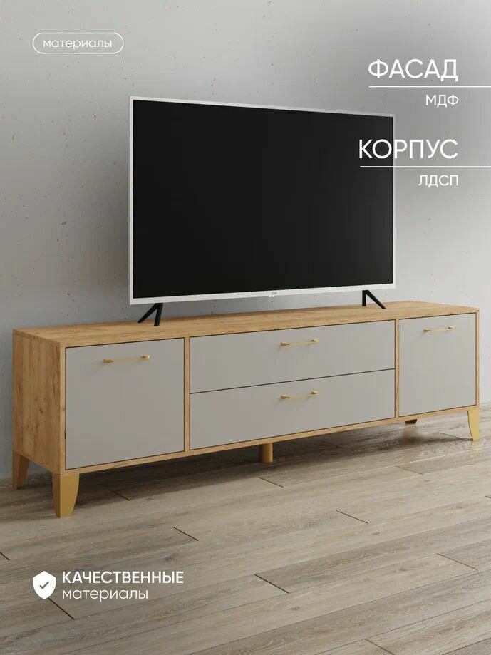 Тумба ARNIKA "Парус-13", под телевизор, ЛДСП, МДФ, цвет дуб крафт золотой интересное: