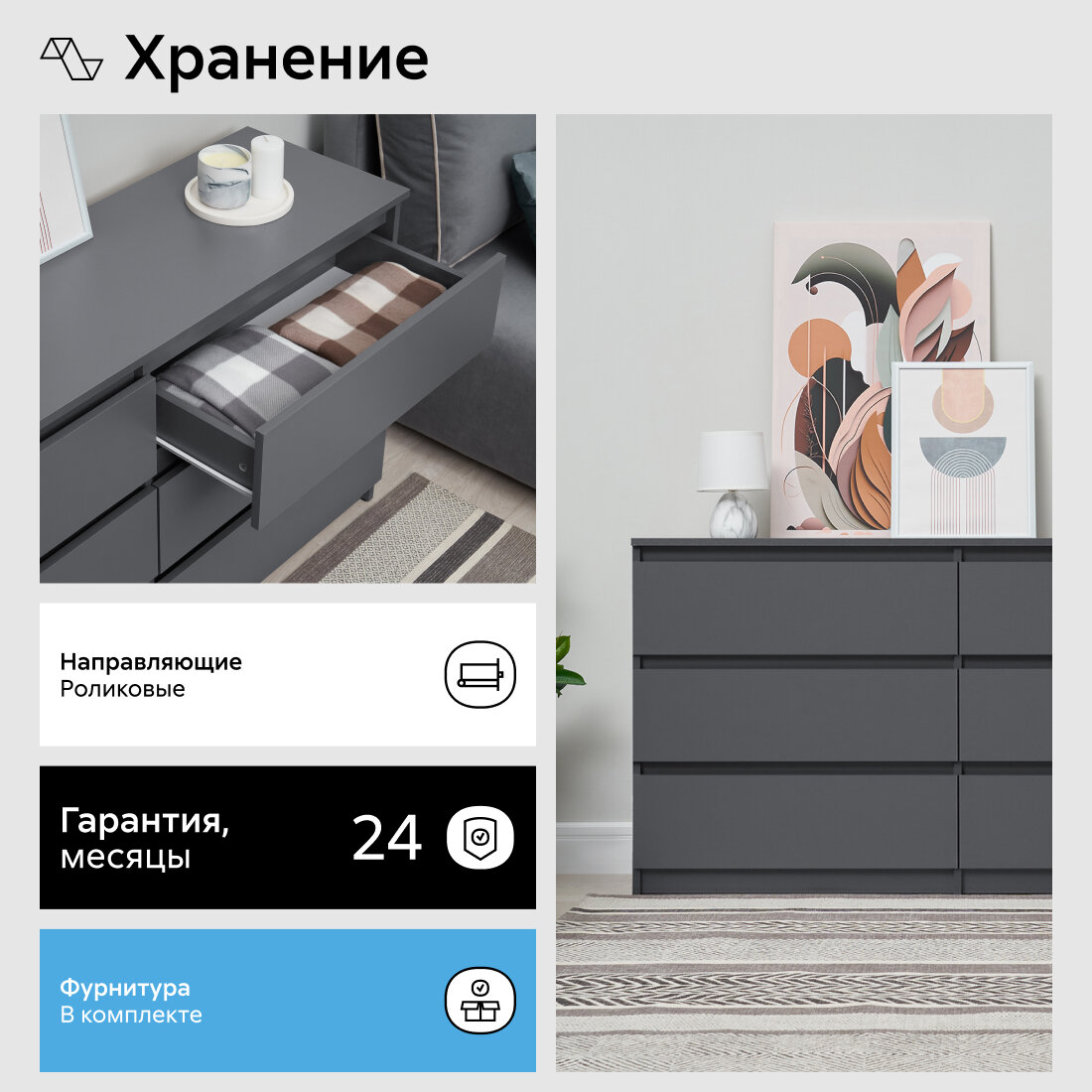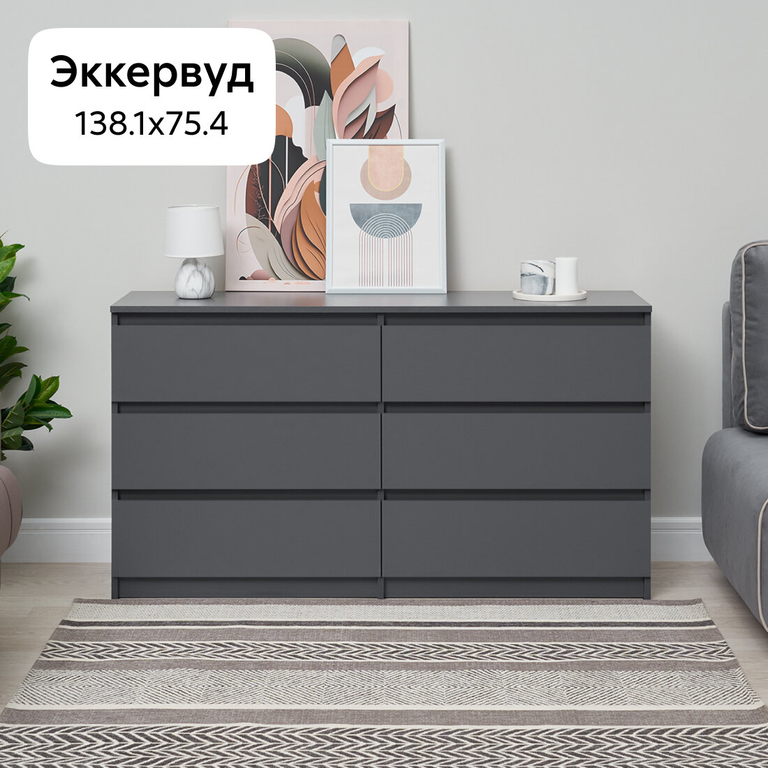 Комод для одежды Нонтон Эккервуд 2, графит серый, 138.1x39x75.4 см интересное: