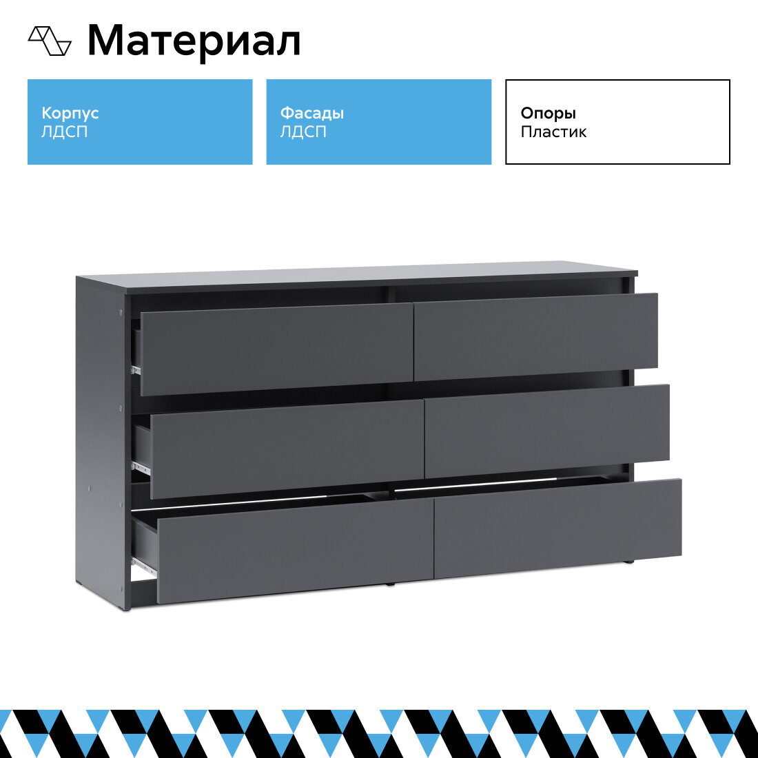 Комод для одежды Нонтон Эккервуд 2, графит серый, 120.1x39x75.4 см