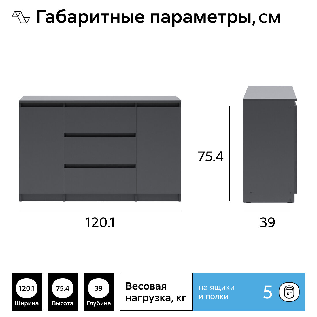 Комод для одежды Нонтон Эккервуд 2, графит серый, 120.1x39x75.4 см интересное: