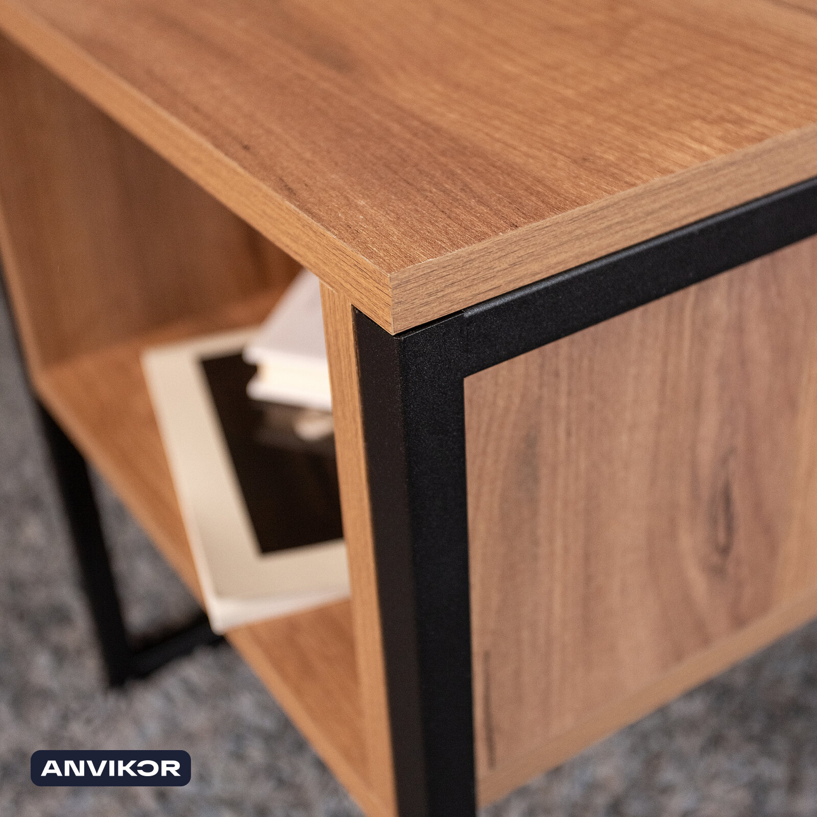 СохранитьПрикроватная тумба открытая с полкой в стиле Лофт Вельга коричневая интересное: