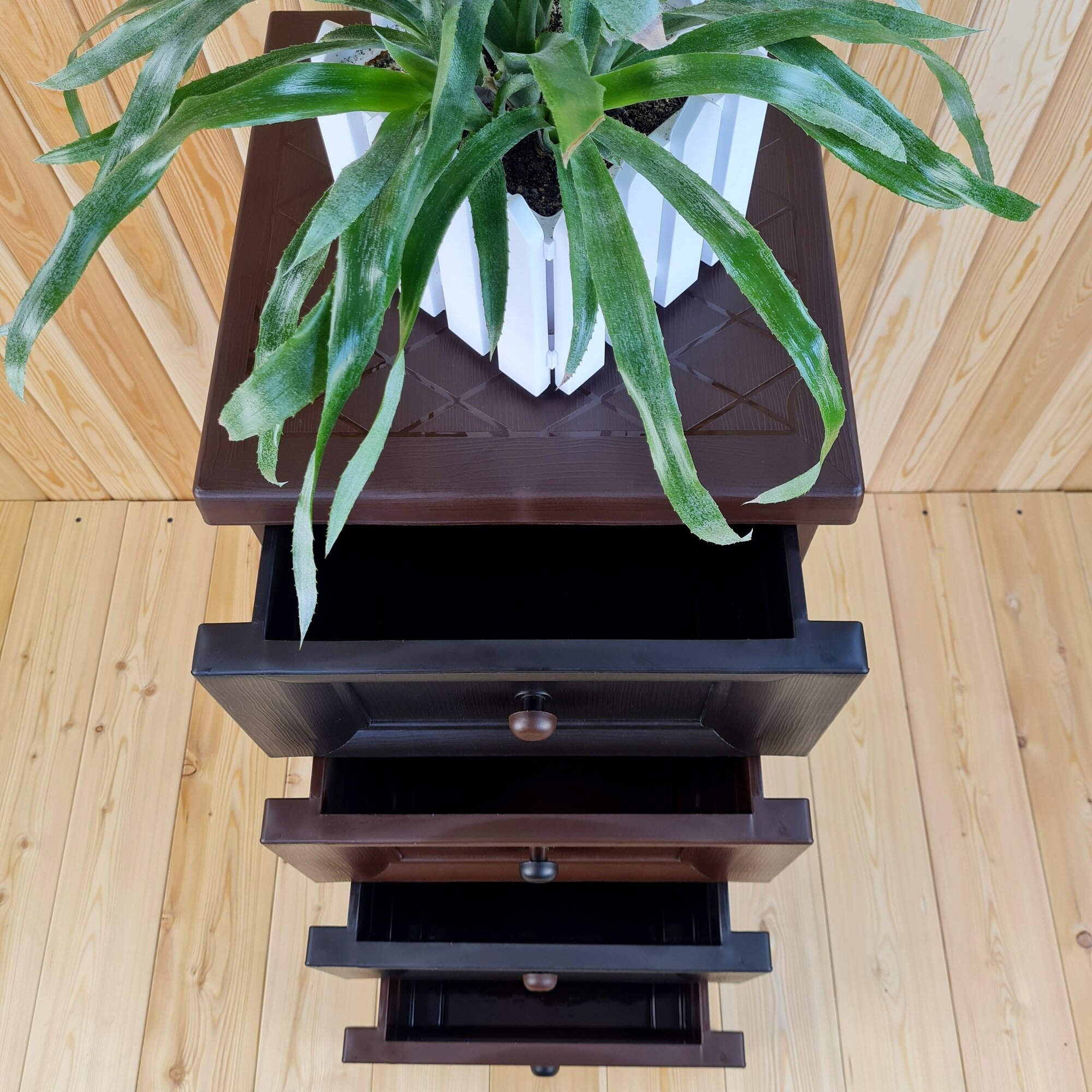 Комод пластиковый ,"УЮТ", усиленный, 4 этажа, Цвет: Коричневый с шоколадными сплошными ящиками.