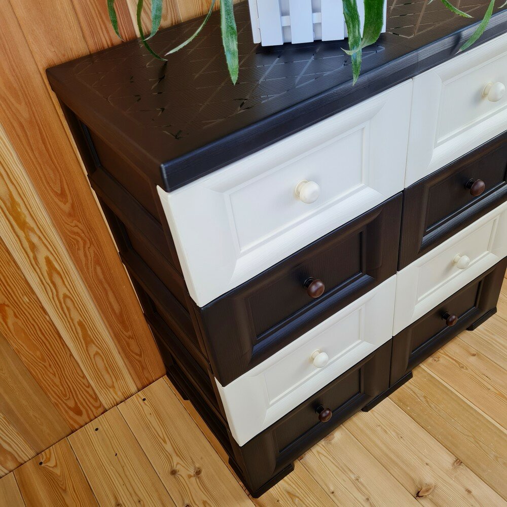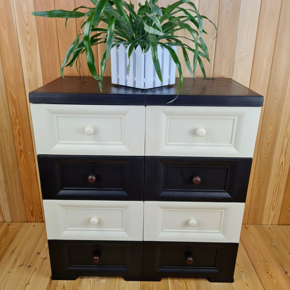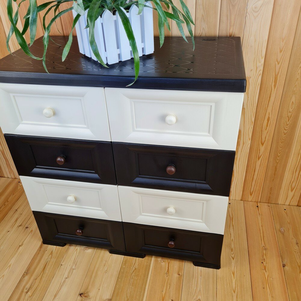Комод пластиковый, "УЮТ", усиленный, 4 этажа, 8 ящиков. Цвет: Шоколадный с шоколадно-бежевыми сплошными ящиками. Арт: К-018-Ш4Б4Ш-В4