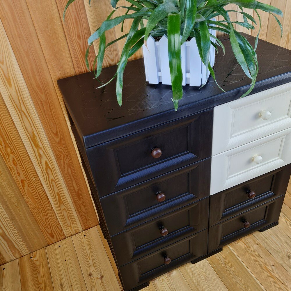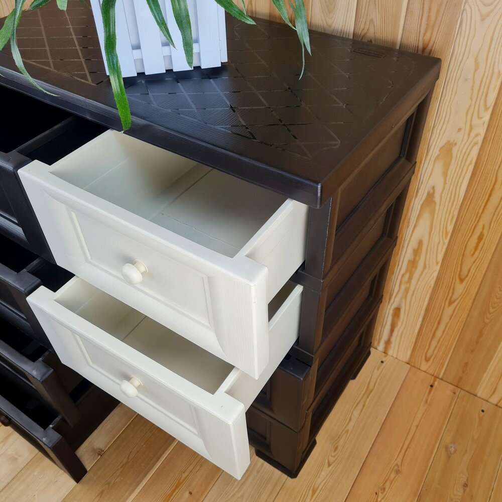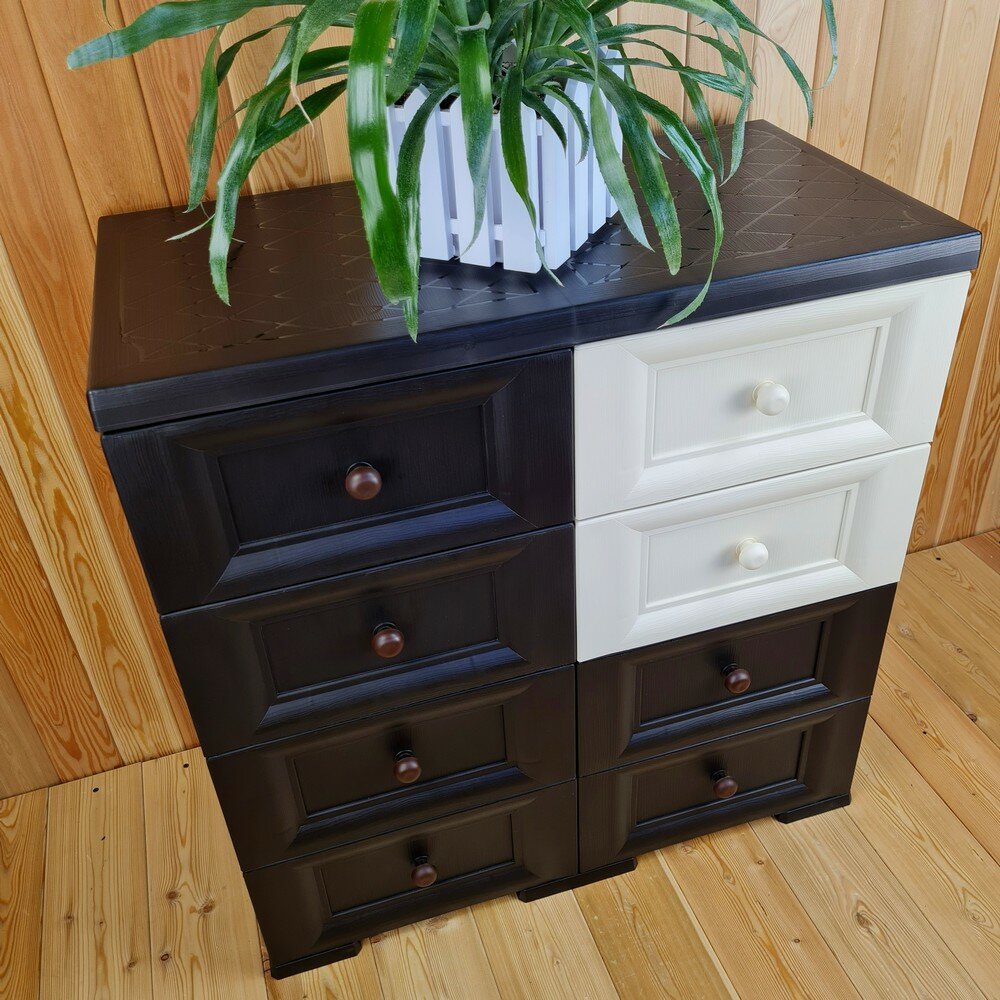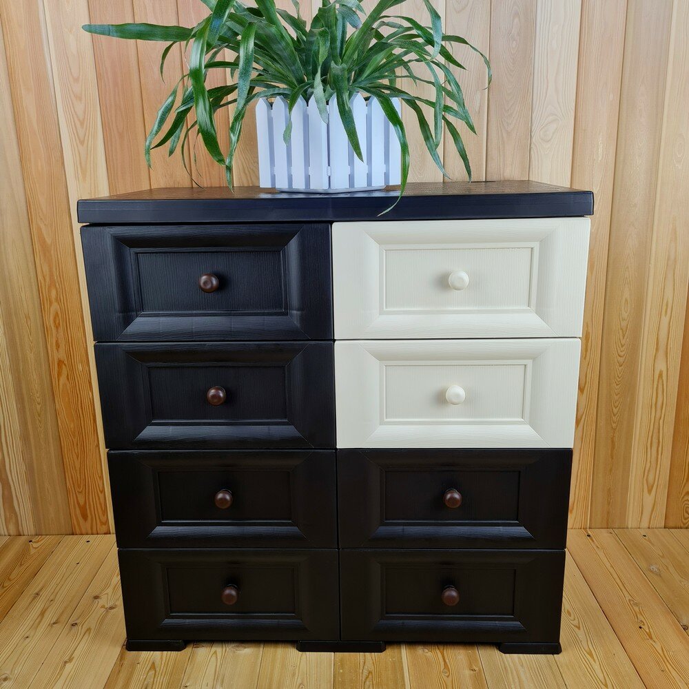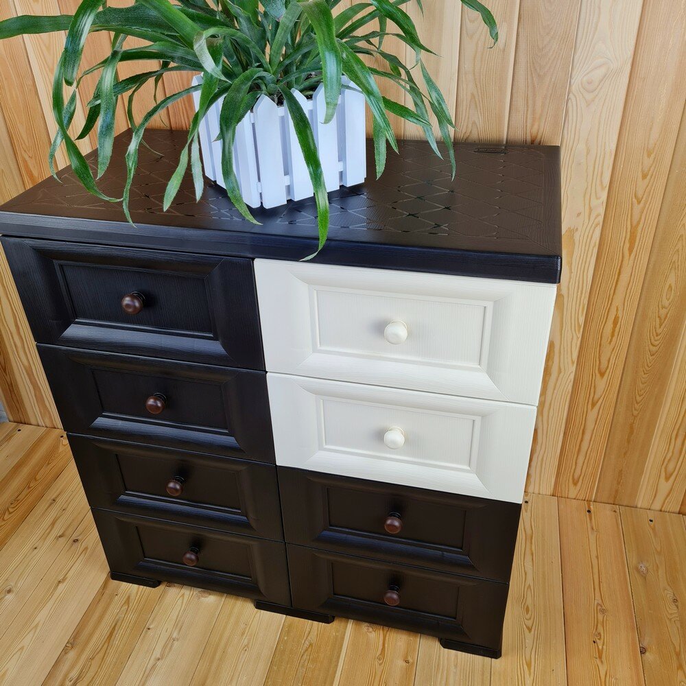 Комод пластиковый, "УЮТ", усиленный, 4 этажа, 8 ящиков. Цвет: Шоколадный с шоколадно-бежевыми сплошными ящиками. Арт: К-018-Ш4Б4Ш-В2