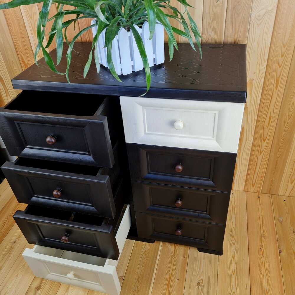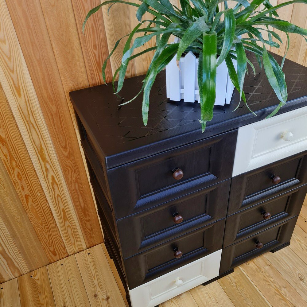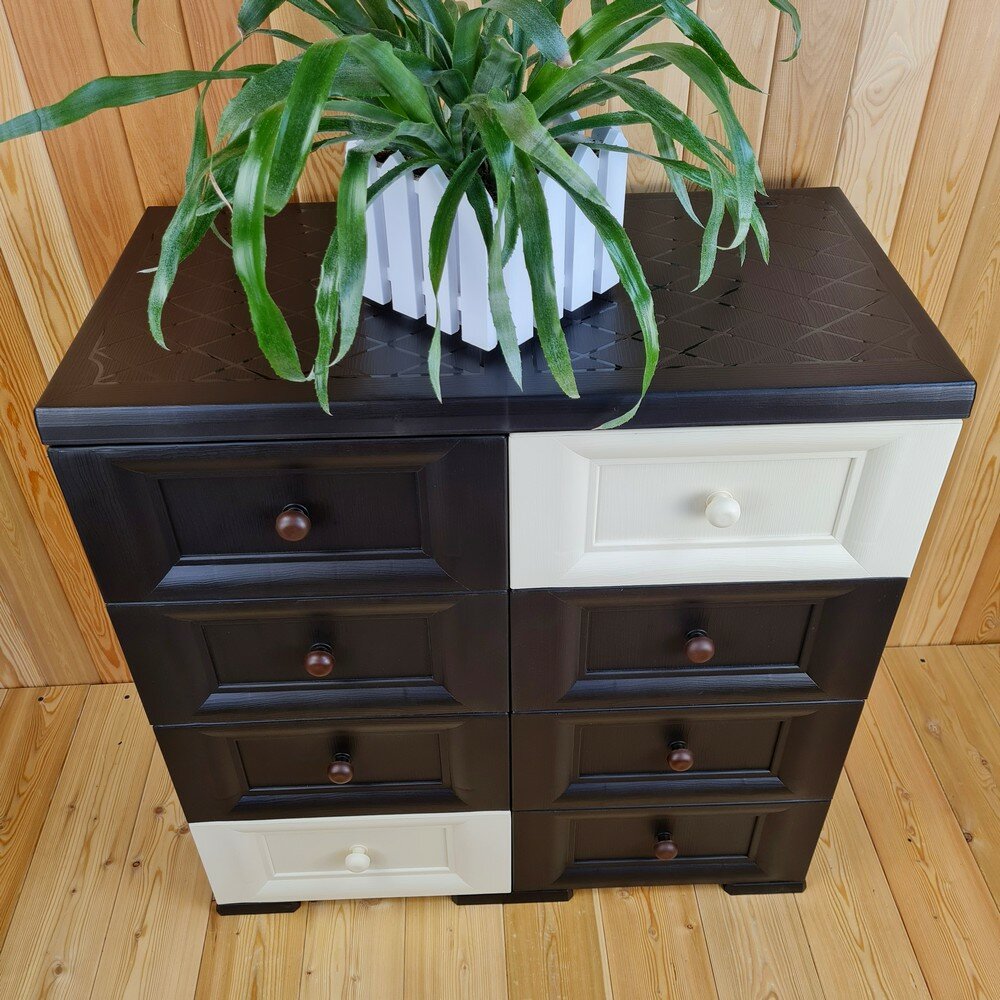 Комод пластиковый, "УЮТ", усиленный, 4 этажа, 8 ящиков. Цвет: Шоколадный с шоколадно-бежевыми сплошными ящиками. Арт: К-018-Ш4Б4Ш-В4