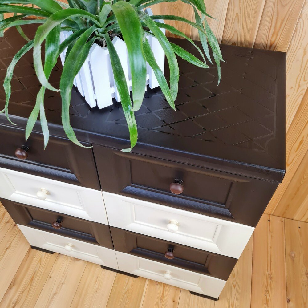 Комод пластиковый, "УЮТ", усиленный, 4 этажа, 8 ящиков. Цвет: Шоколадный с шоколадно-бежевыми сплошными ящиками. Арт: К-018-Ш4Б4Ш-В2