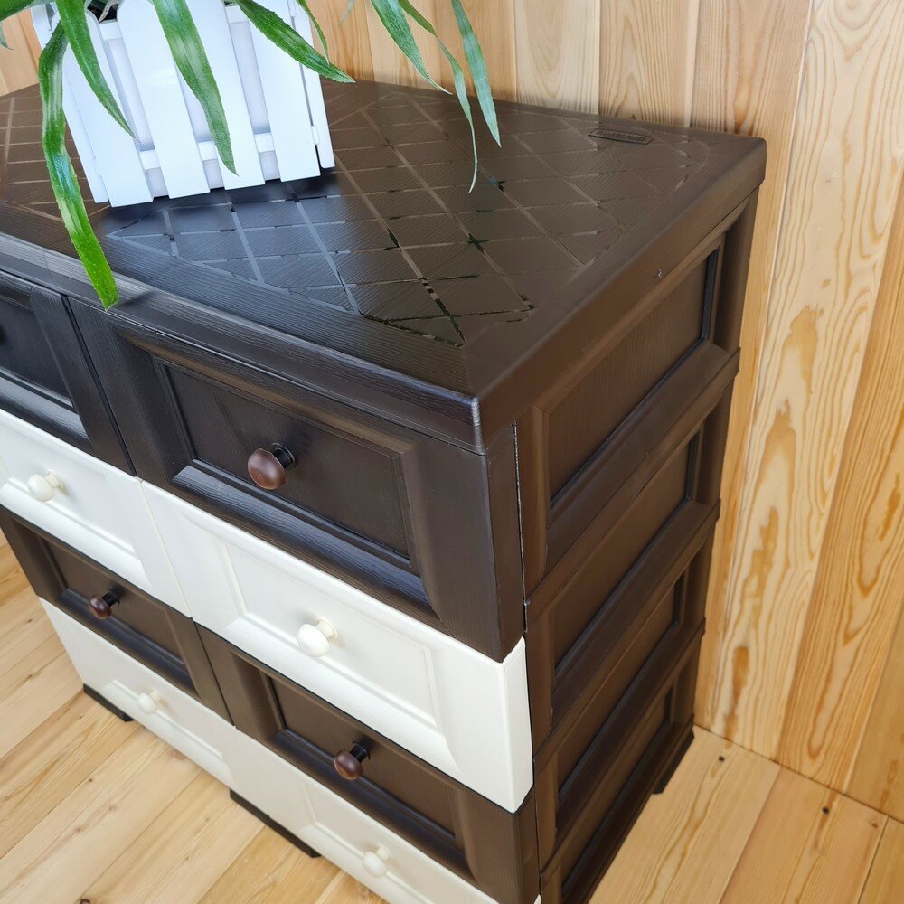 Комод пластиковый, "УЮТ", усиленный, 4 этажа, 8 ящиков. Цвет: Шоколадный с шоколадно-бежевыми сплошными ящиками. Арт: К-018-Ш4Б4Ш-В7