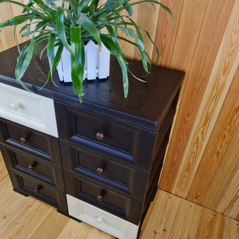 Комод пластиковый, "УЮТ", усиленный, 4 этажа, 8 ящиков. Цвет: Шоколадный с шоколадно-бежевыми сплошными ящиками. Арт: К-018-Ш4Б4Ш-В4