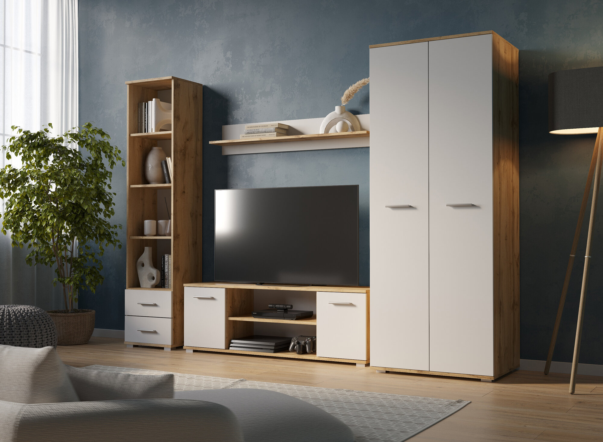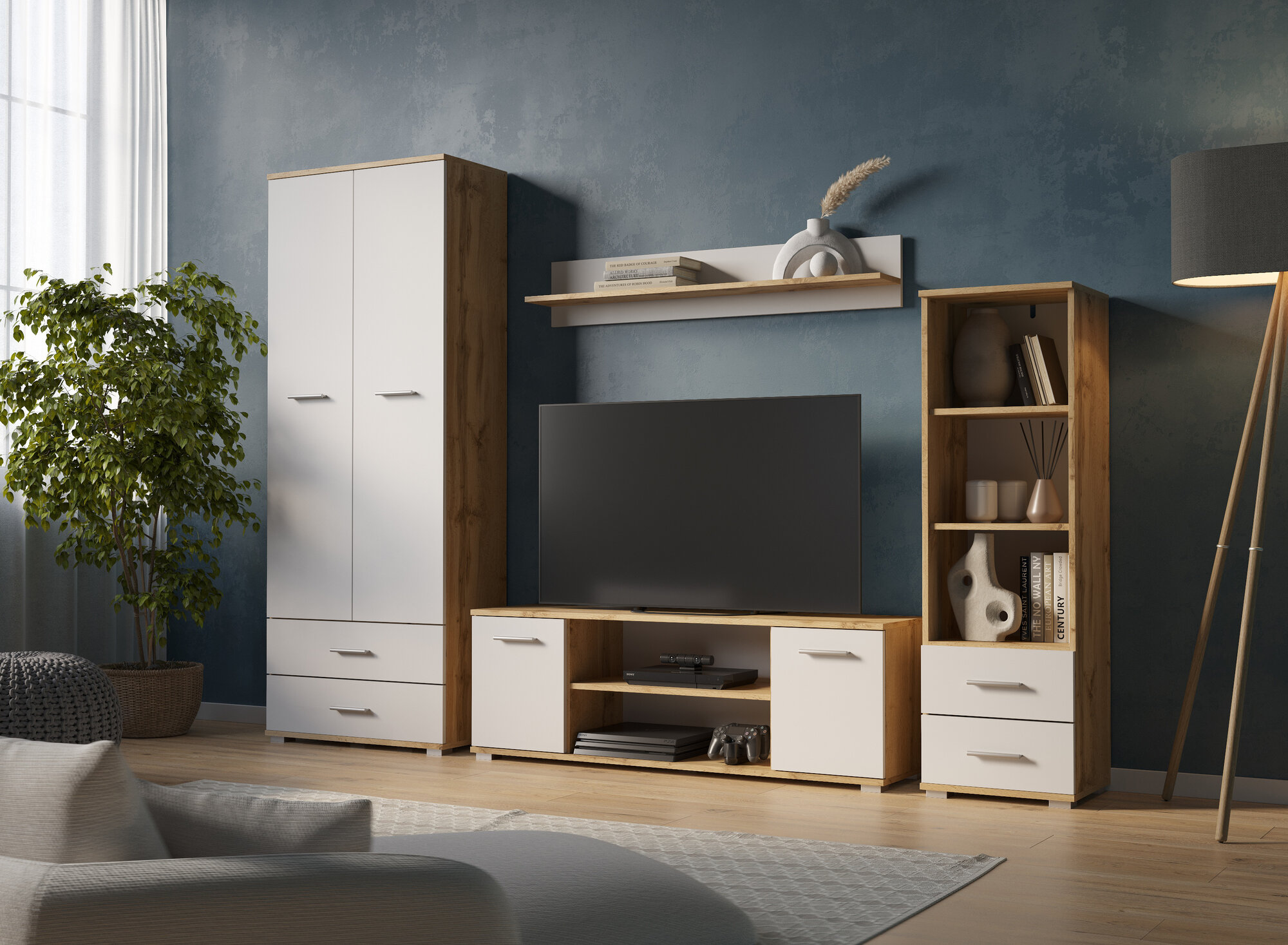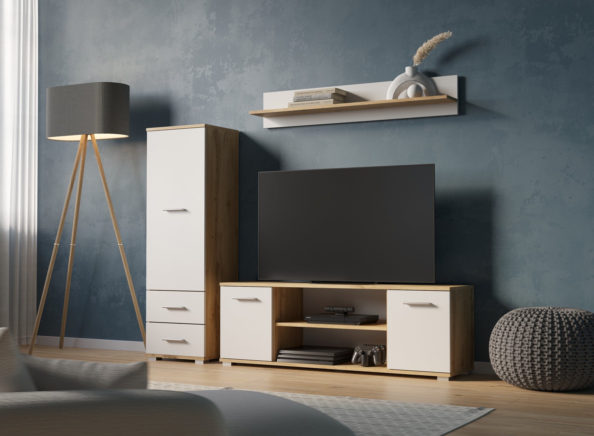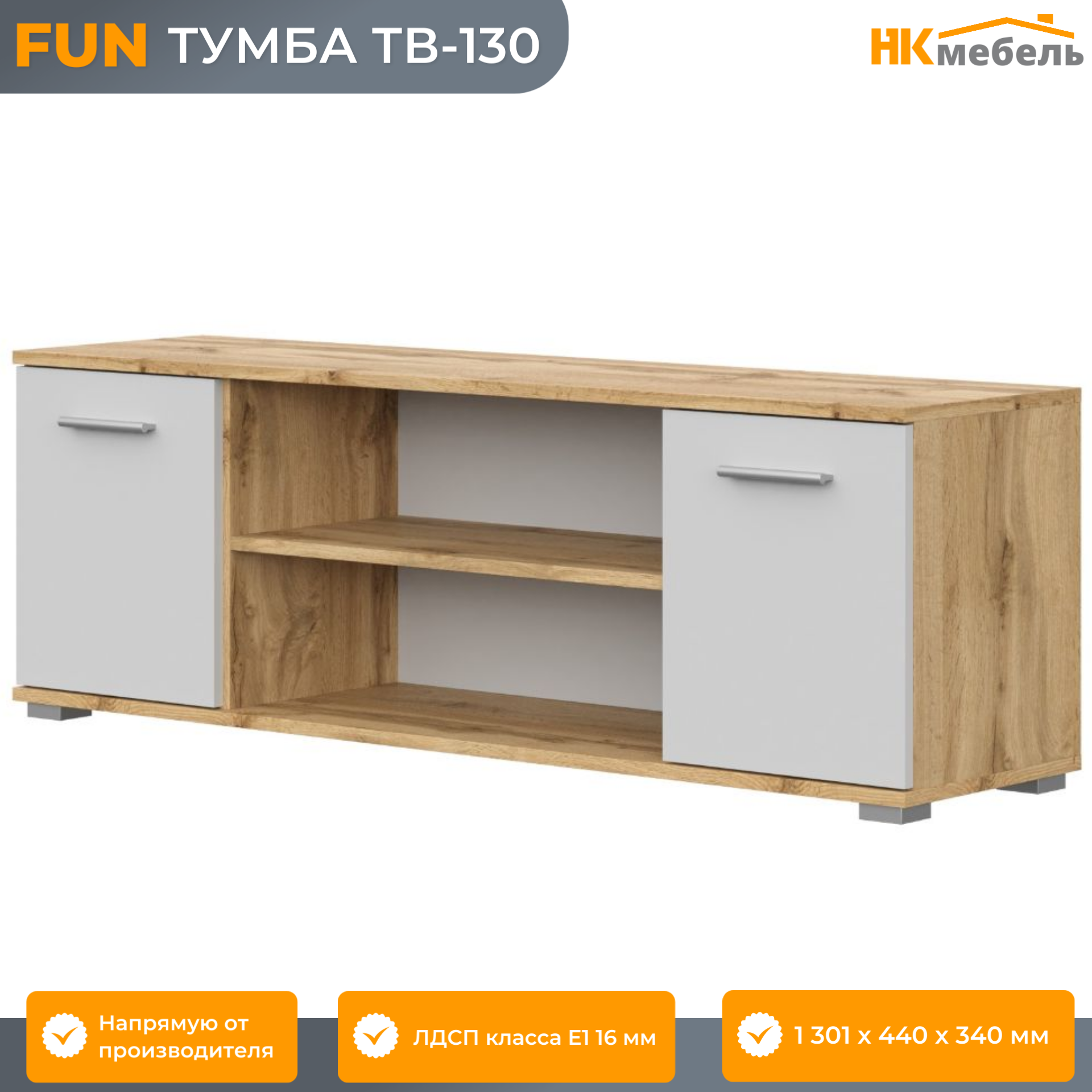 Купить FUN (ФАН) тумба ТВ-130 ЛДСП, 130,1 х 44 х 34 см, 2 двери, 6 секций, Дуб Вотан/Белый