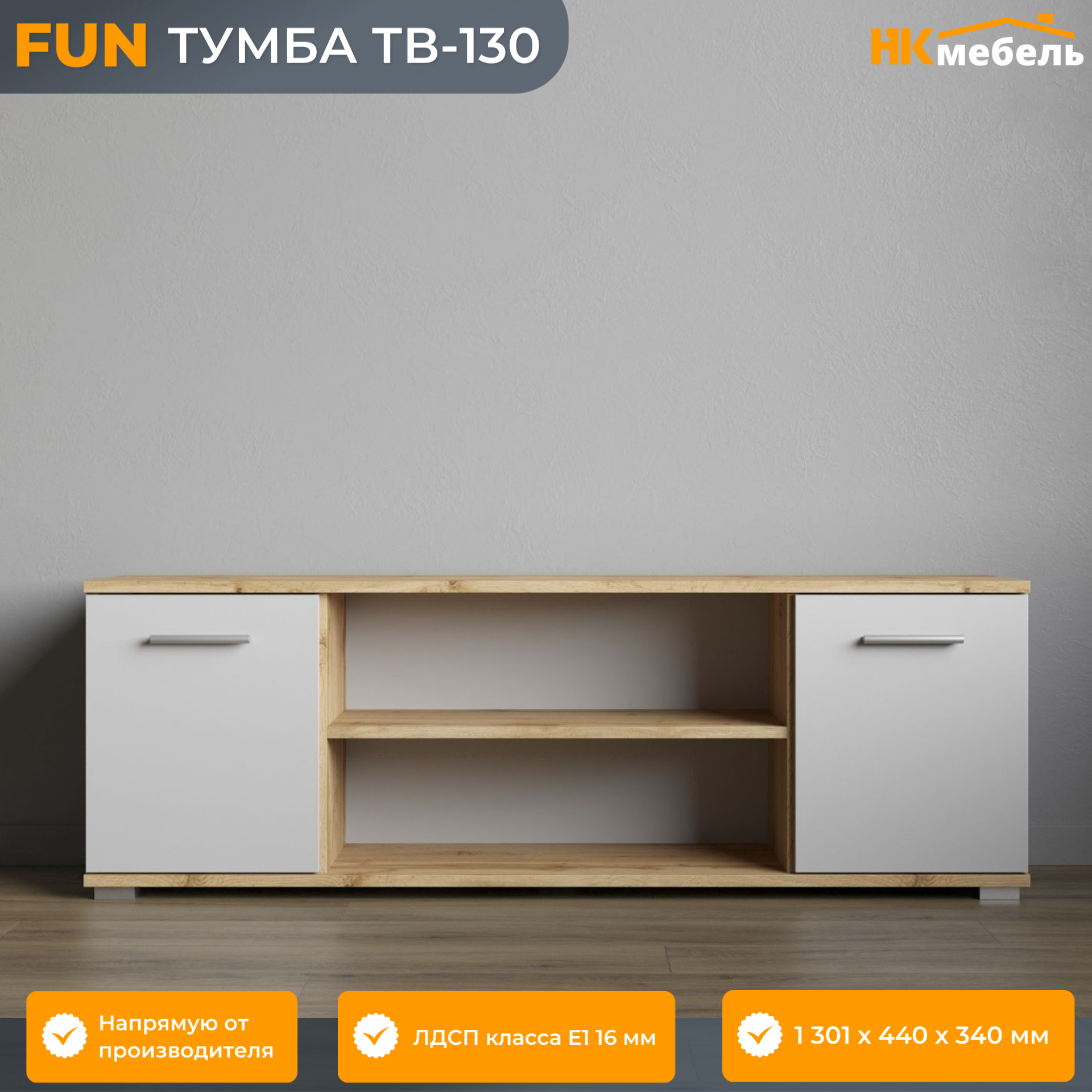 FUN (ФАН) тумба ТВ-130 ЛДСП, 130,1 х 44 х 34 см, 2 двери, 6 секций, Дуб Вотан/Белый интересное: