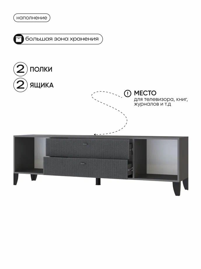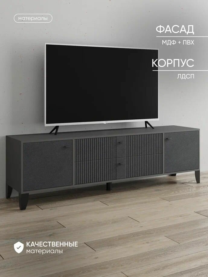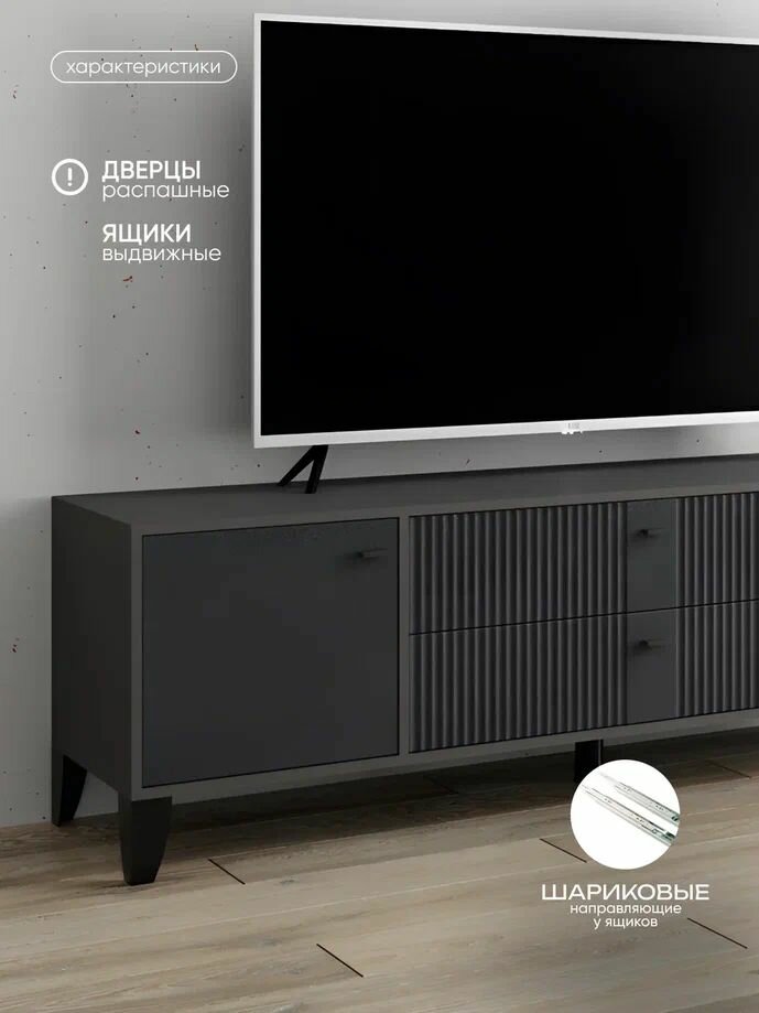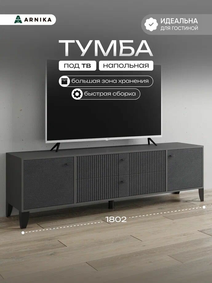 Тумба ARNIKA "Парус-10", для телевизора, ЛДСП/МДФ, 4 ящика, графит интересное: