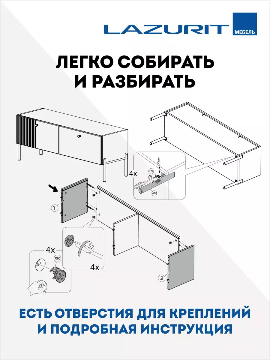 Тумба под телевизор Lazurit "Rockefeller", ЛДСП, МДФ, чёрная, 114x35,8x48см интересное: