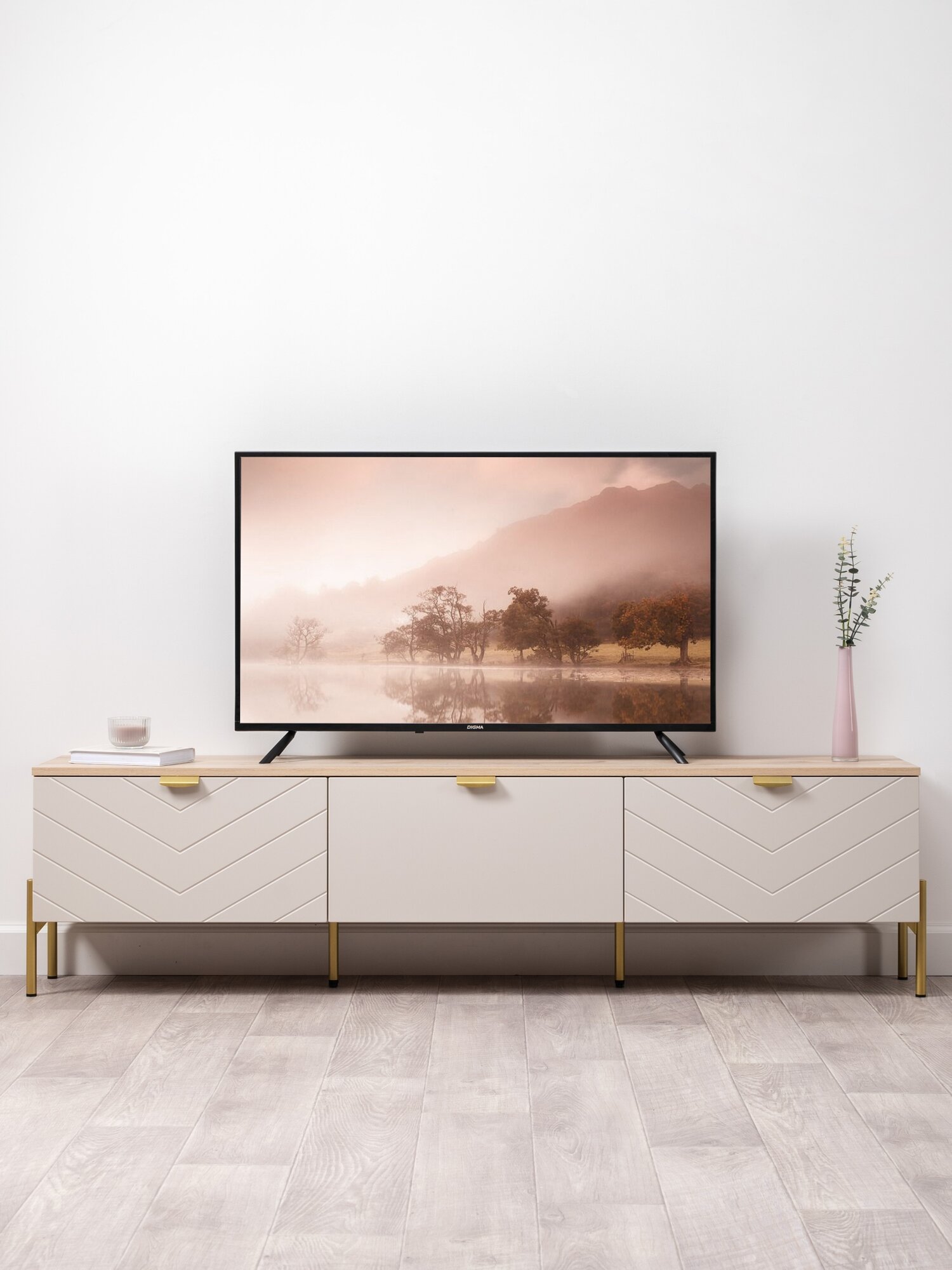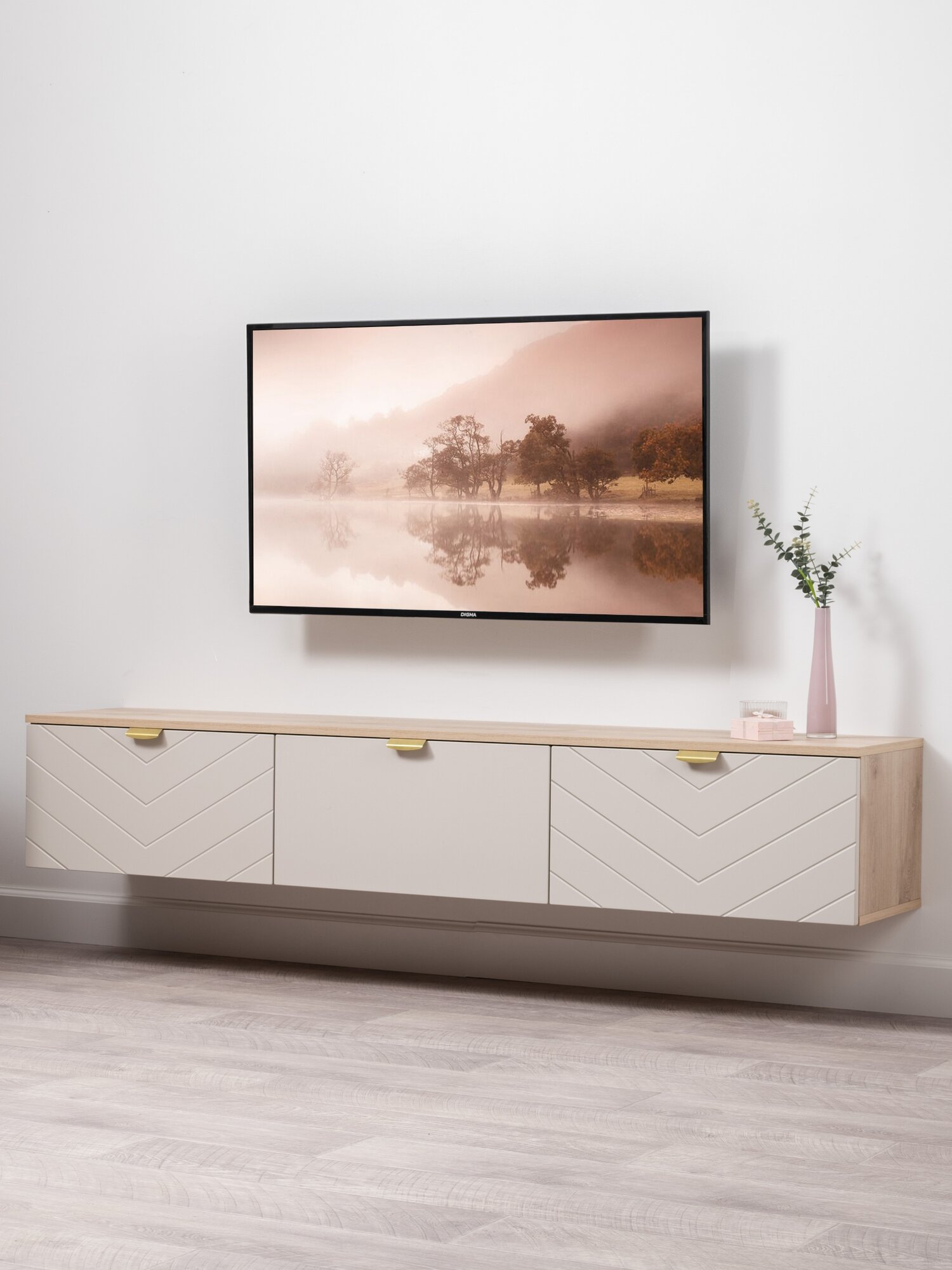 Тумба под ТВ напольная навесная Венеция 16.64, Дуб эндгрейн, Веллюто Капучино