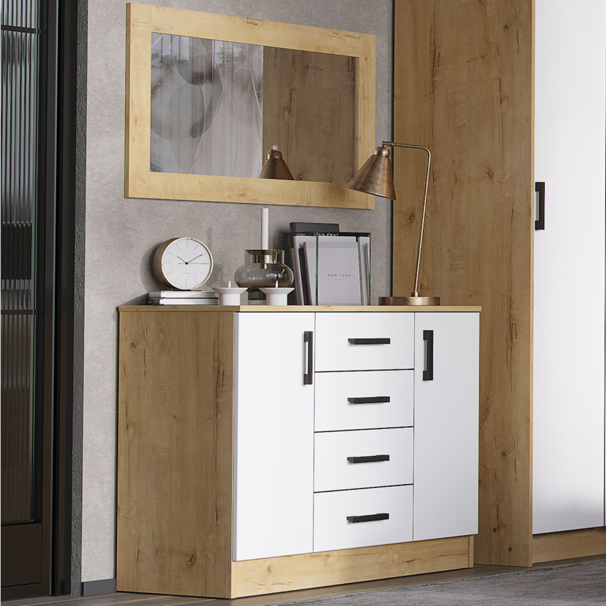 Комод К800 Эра 4-мя выдвижными ящиками Дуб Вотан/Белый гладкий