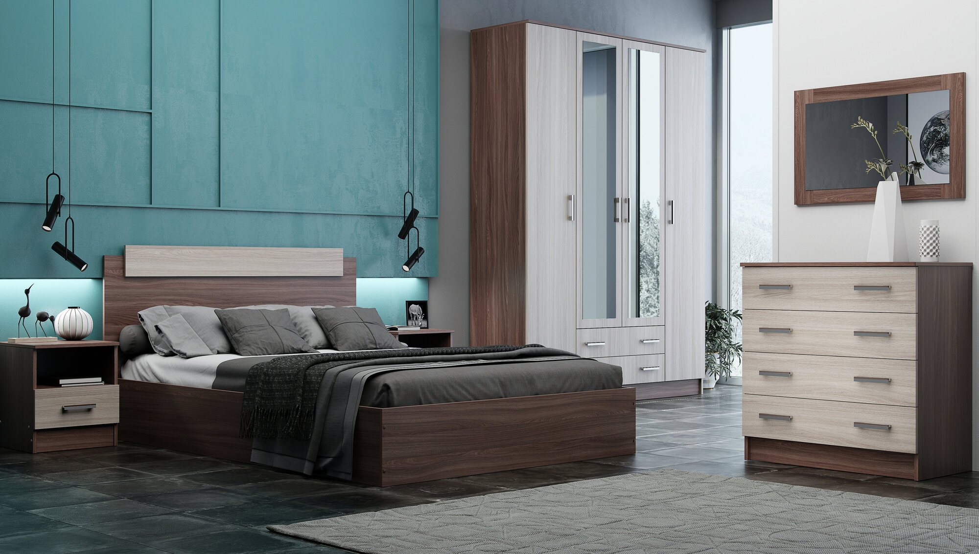 Комод Адель 800-4ящиками Белый гладкий /Дуб Вотан /Цемент темный