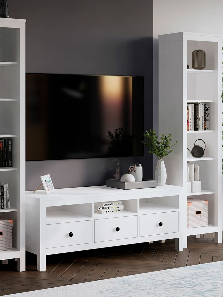 Тумба ТВ ММЦ Гостиная Кантри 03 (белый лак) из массива сосны, 145 х 57 х 45 см. интересное: