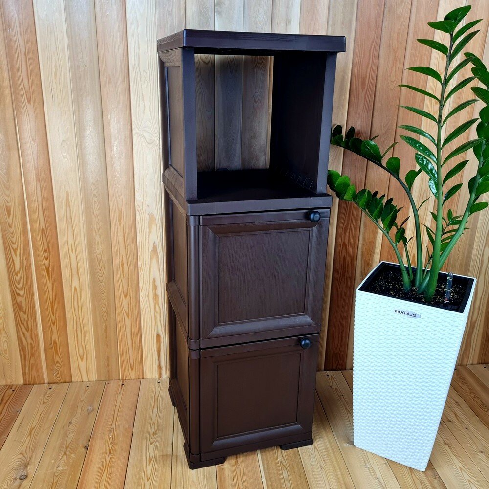 Тумба "УЮТ" пластиковая, усиленная, 40,5х42х122,5 h, 3 этажа, 2 правых дверцы. Цвет: Коричневый. Арт: Э-172-Д