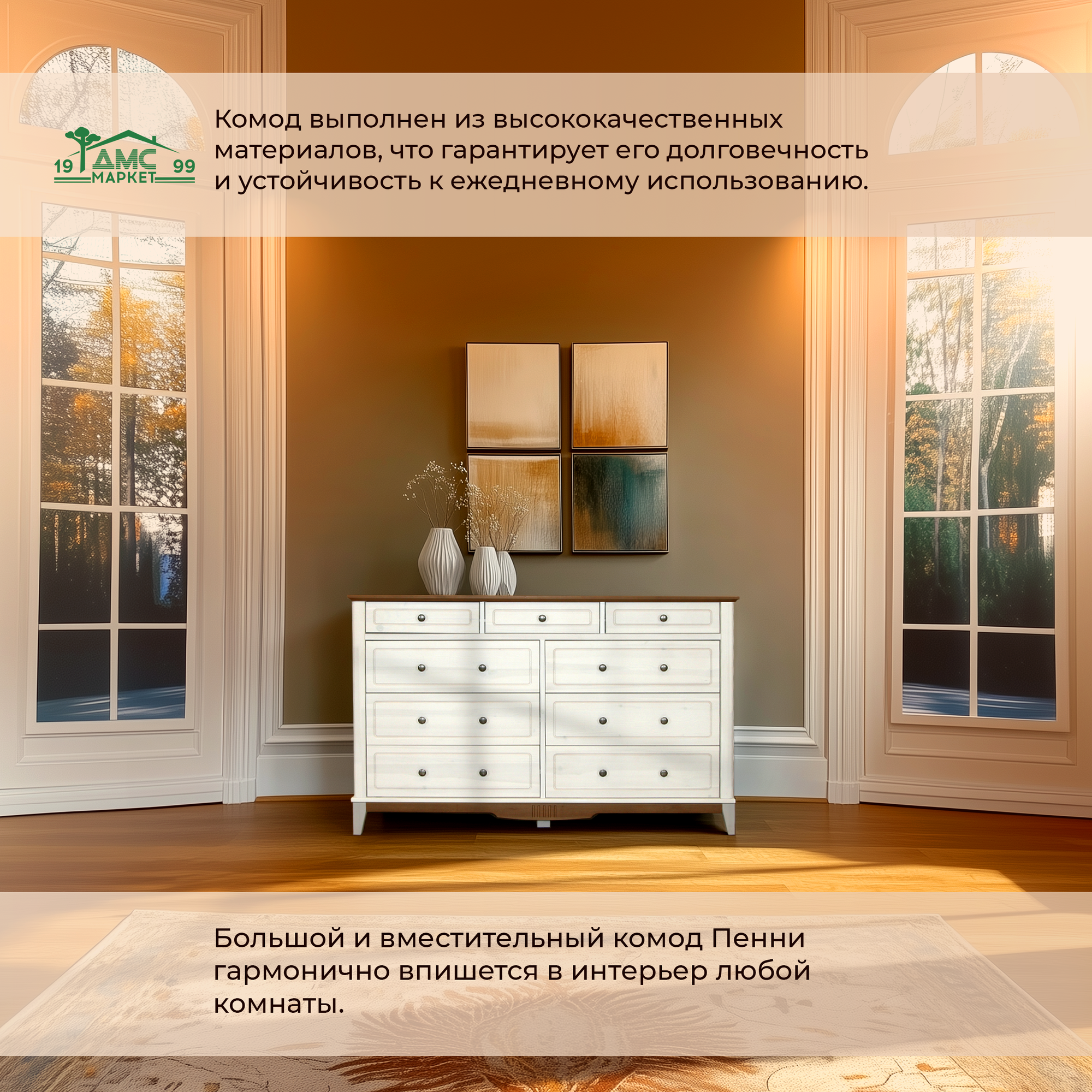 Комод "Пенни" 1444х452х964 мм белый/антик "Дом мебели из сосны" интересное: