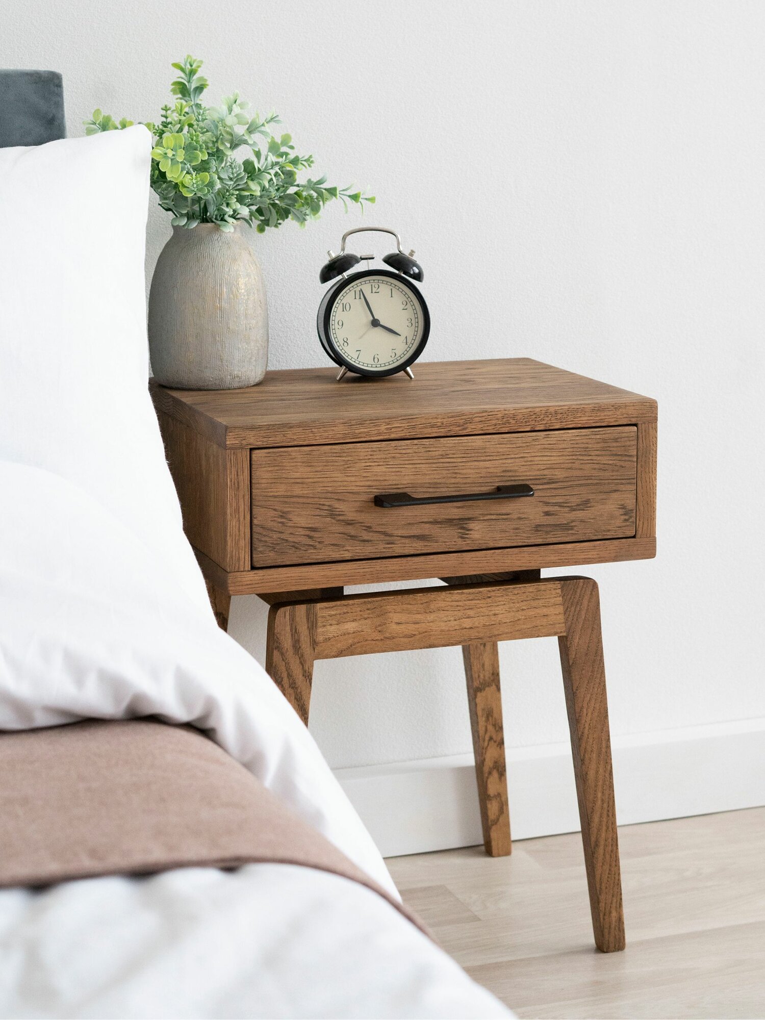 Тумба прикроватная Zolo из натурального дерева - дуб. Высота 55 см. Парящий корпус 30х39 см. Цвет: табак