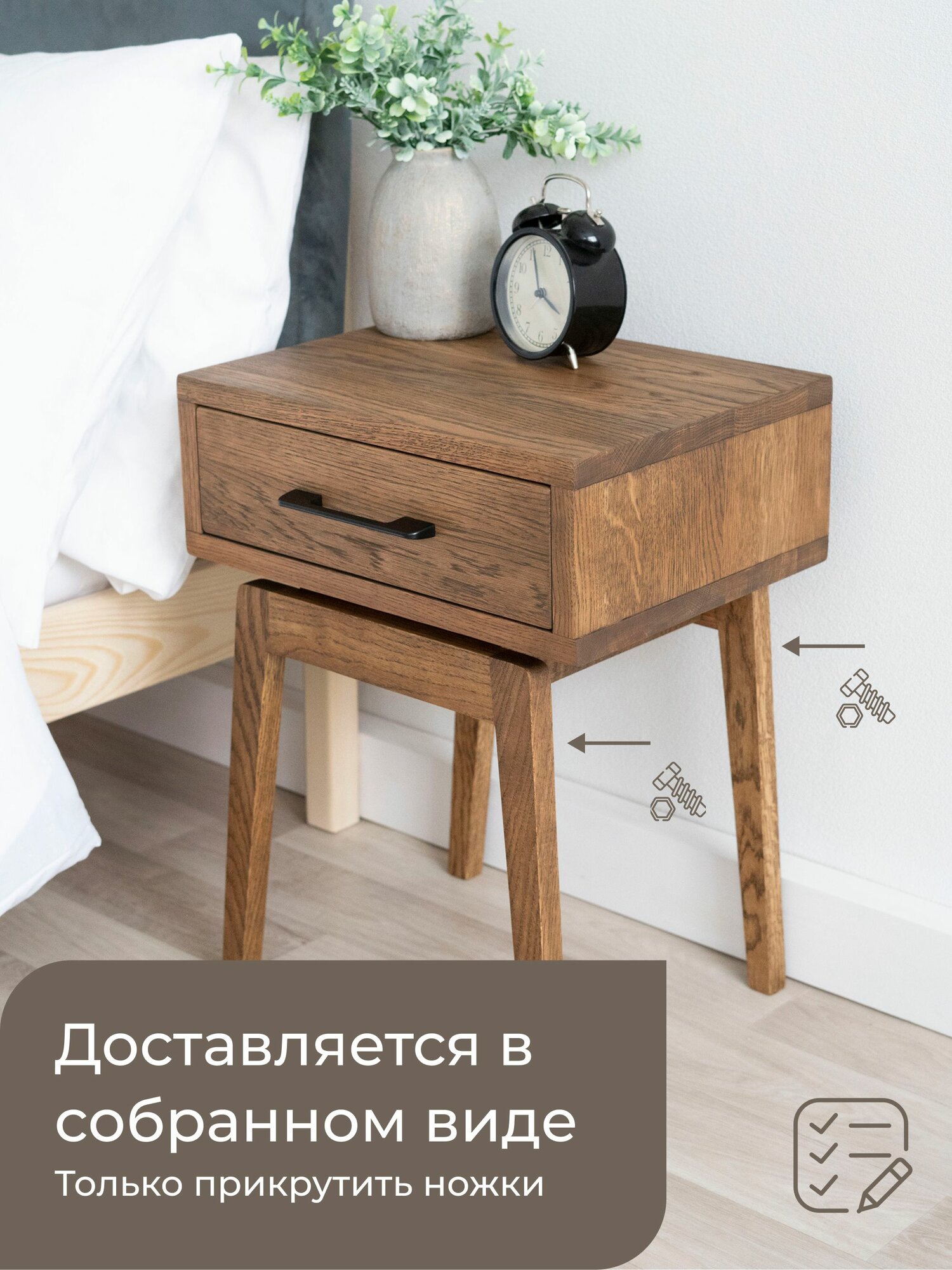 Тумба прикроватная Zolo из натурального дерева - дуб. Высота 55 см. Парящий корпус 30х39 см. Цвет: табак Ручка: скоба