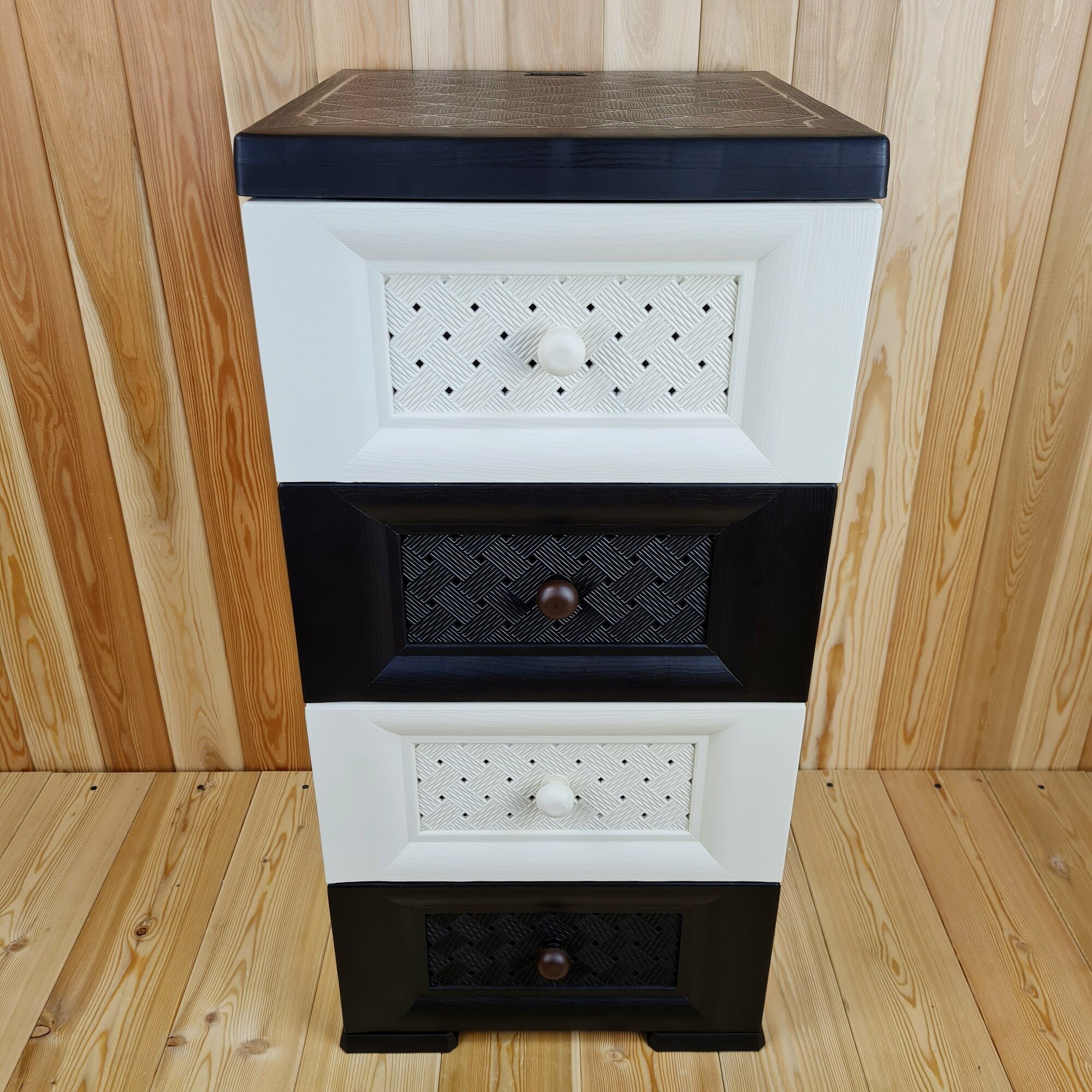 Купить Комод пластиковый, "домино", усиленный, 4 этажа, 4 ящика, Фактура дерева. К-007-Домино