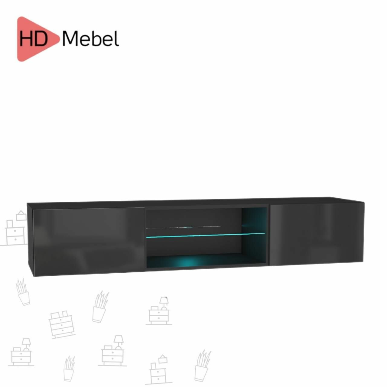 Тумба под ТВ, книжный шкаф, шкаф навесной модульный POINT 33 Черный глянец интересное: